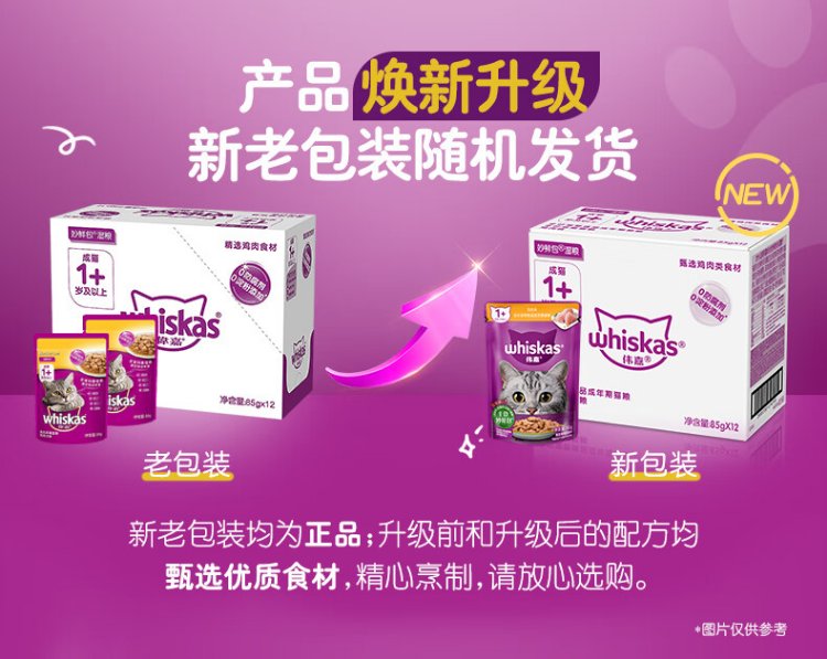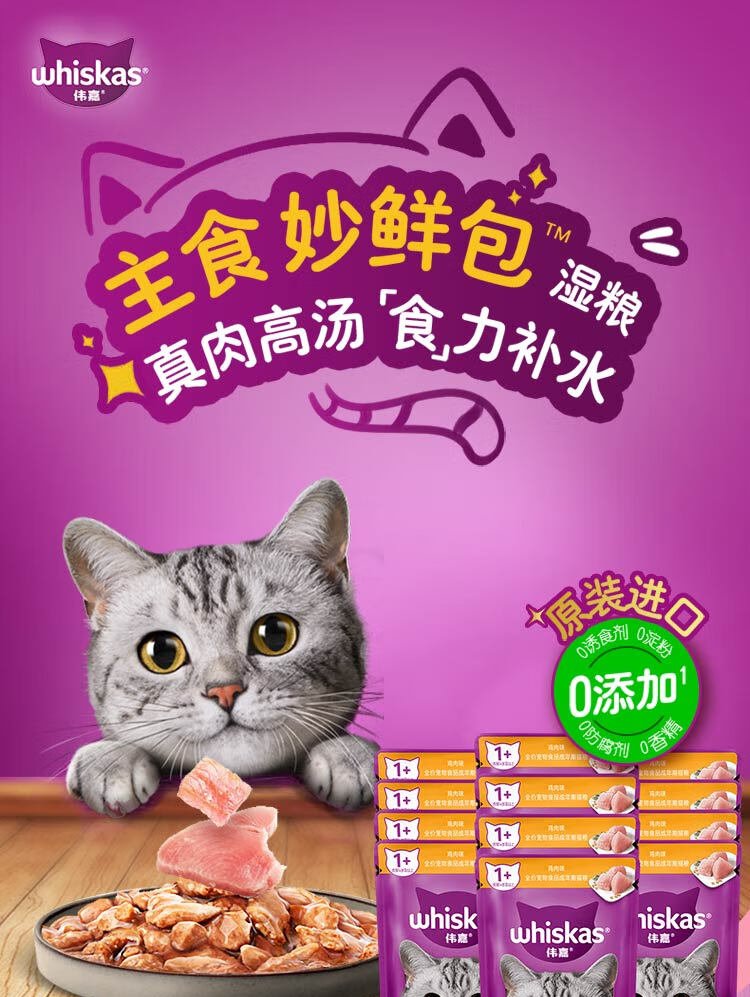 Weijia staple food soft package canned adult cat food staple food Miaoxian package 85g*12 chicken flavor whole box