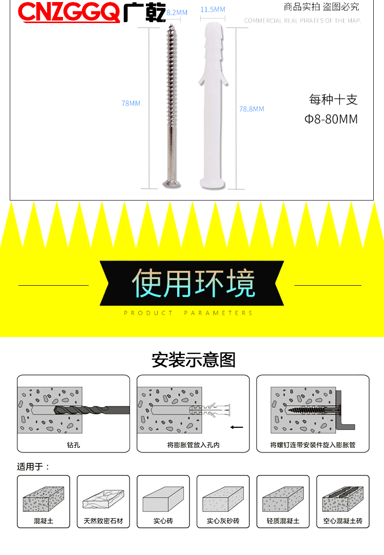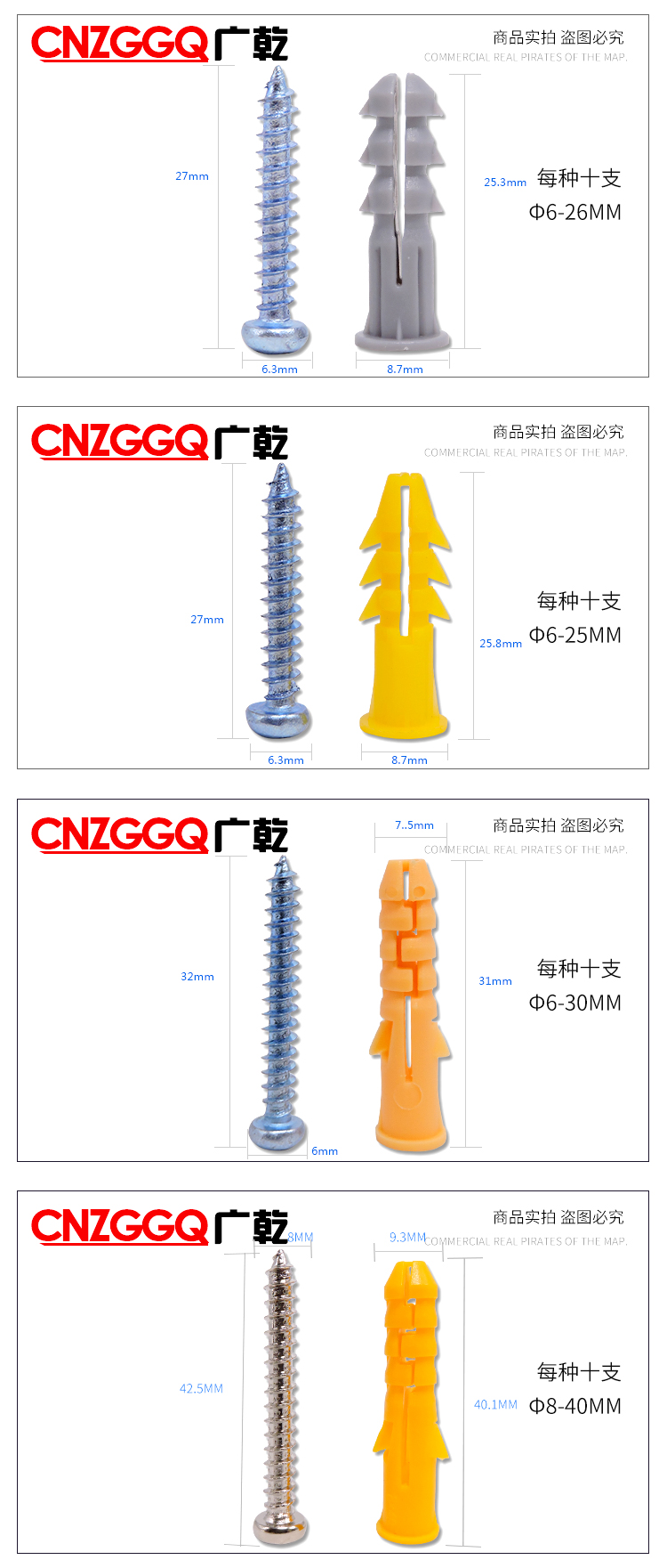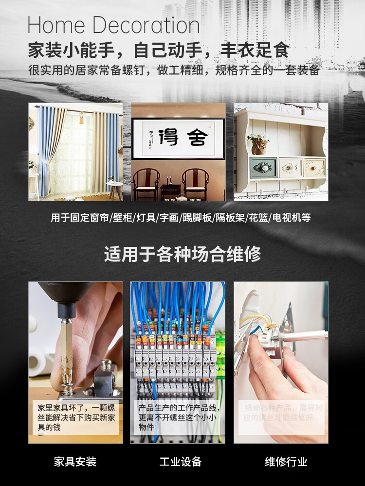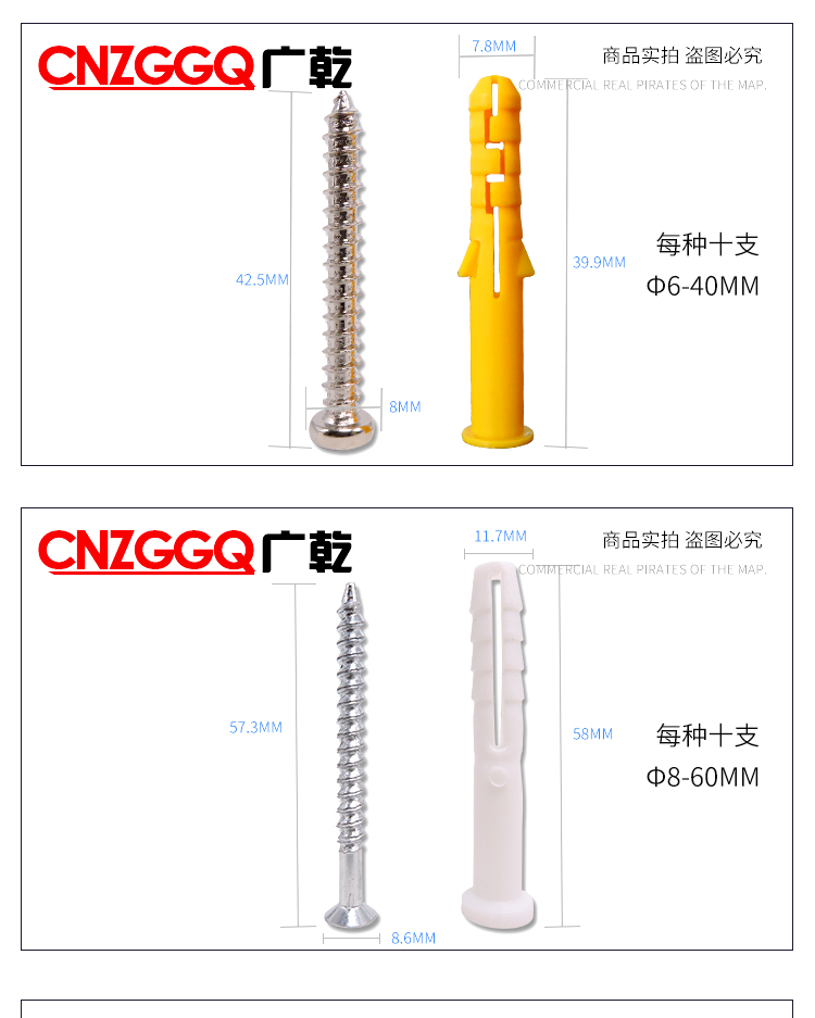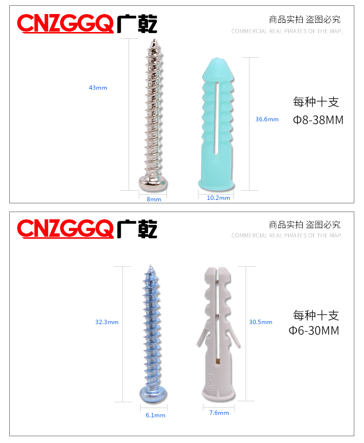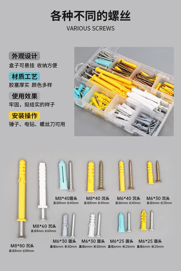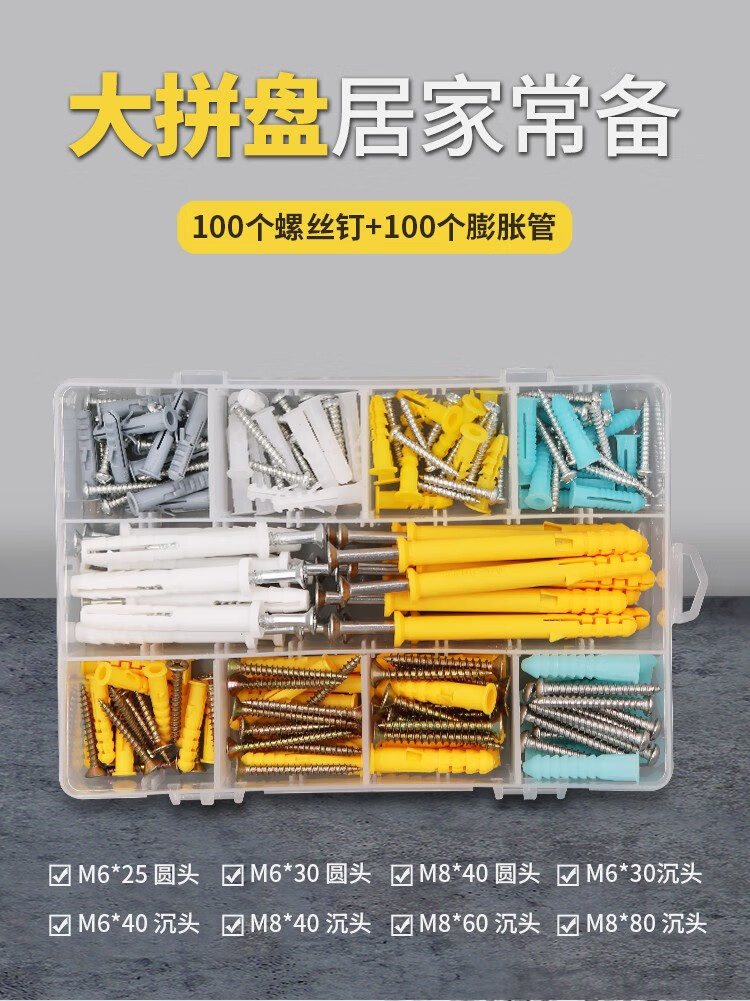 CNZGGQ self-tapping expansion screw set mixed 200 lengthened stainless steel cross self-tapping screws expansion tube nails self-tapping screw set