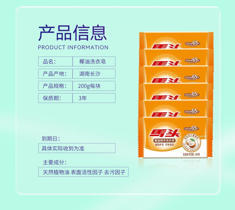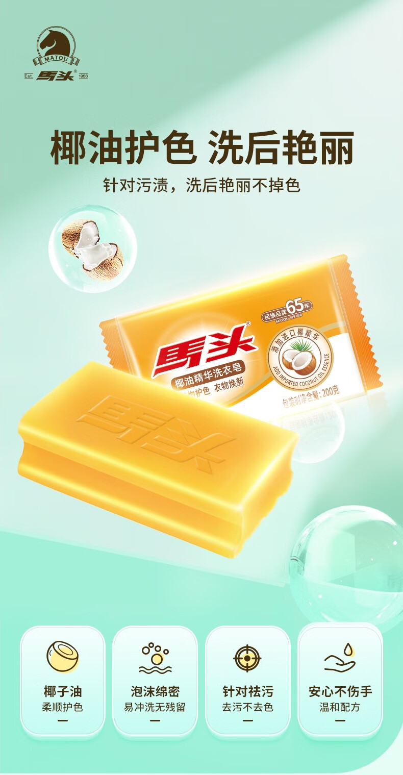 Horsehead soap special laundry soap for underwear, sterilizing transparent soap, natural coconut oil deep stain removal without hurting hands, 150g, 5 pieces, 5-in-1