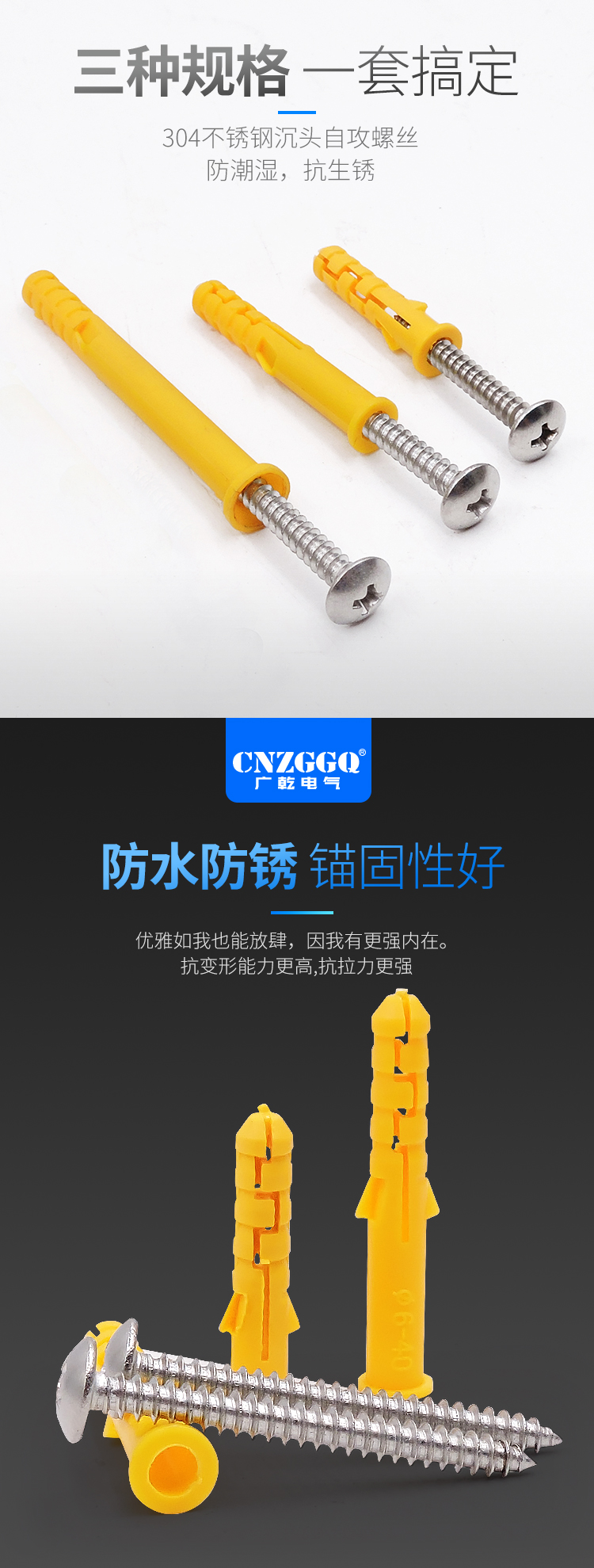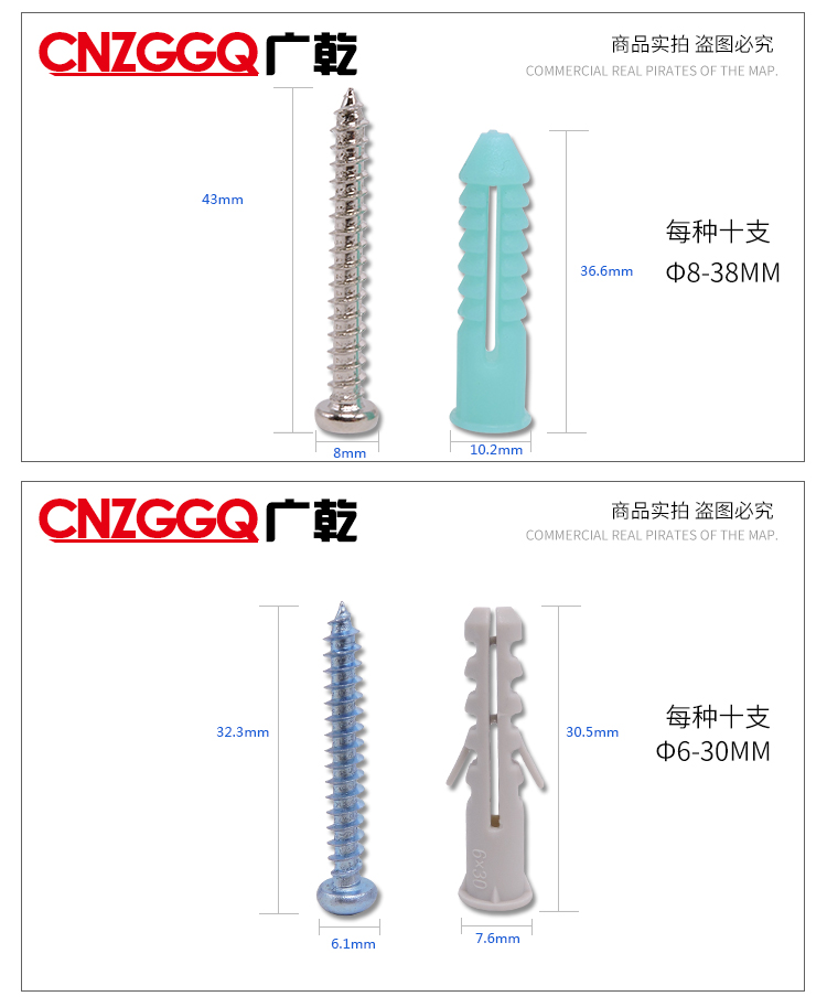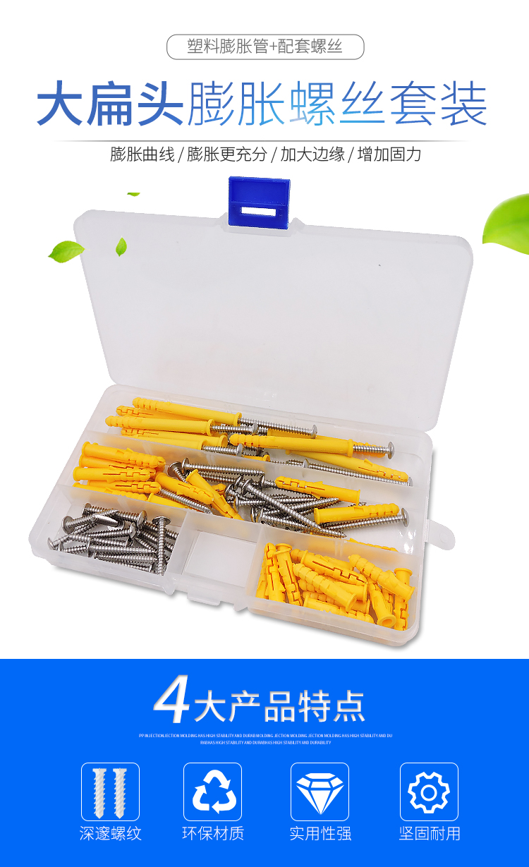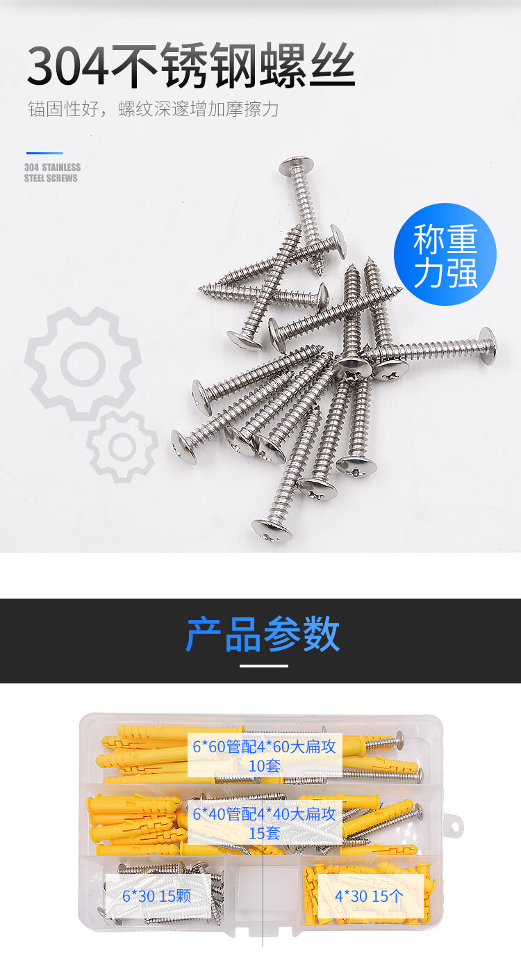 Guangqian self-tapping expansion screw set, extended stainless steel cross screws, expansion tube expansion bolts, wood screws, nails, wall switch socket screws, expansion screw set 200 sets