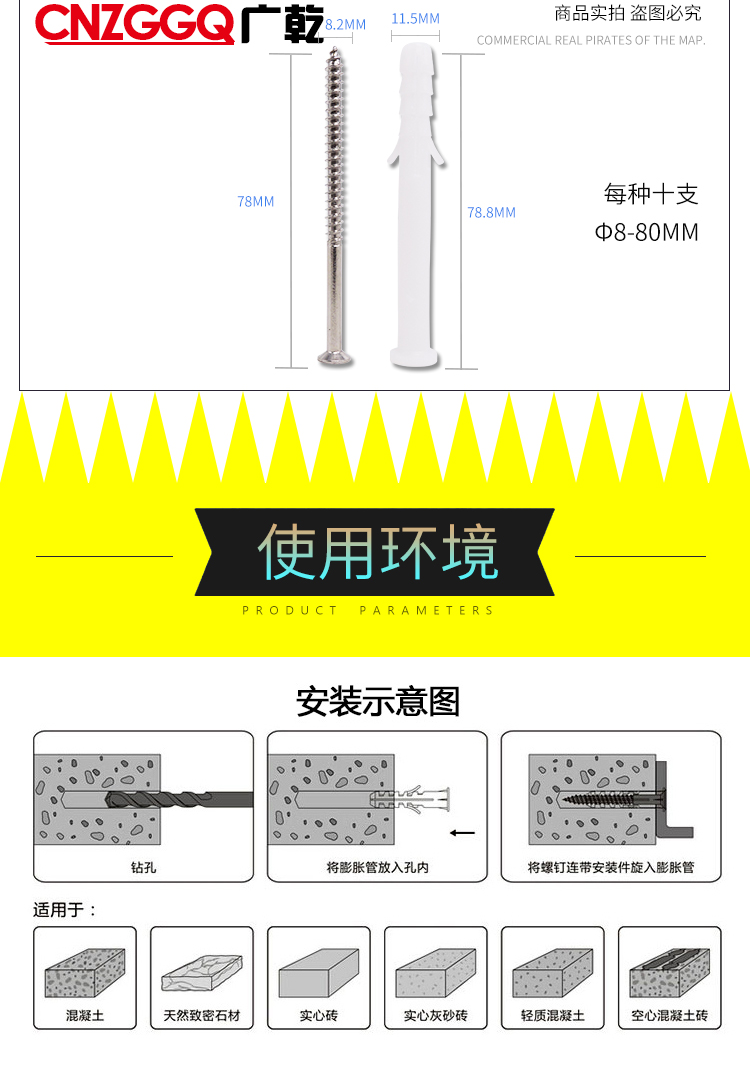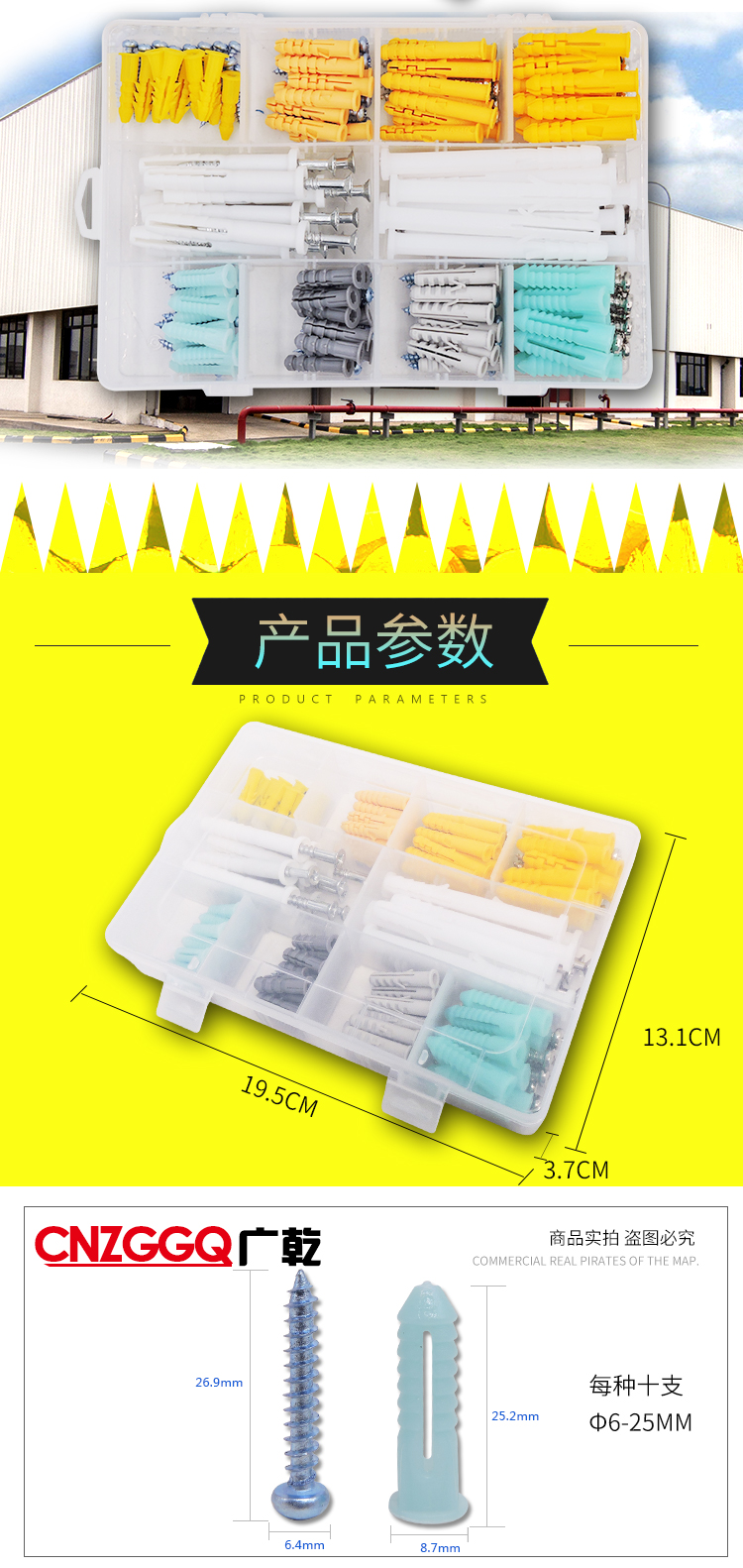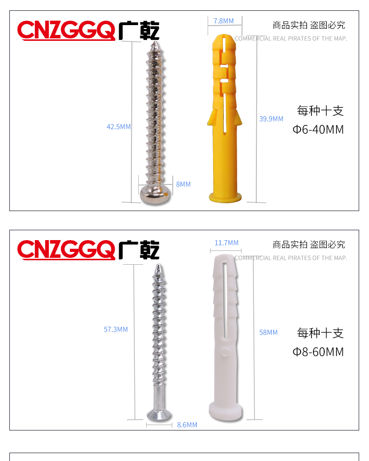 Guangqian self-tapping expansion screw set, extended stainless steel cross screws, expansion tube expansion bolts, wood screws, nails, wall switch socket screws, expansion screw set 200 sets