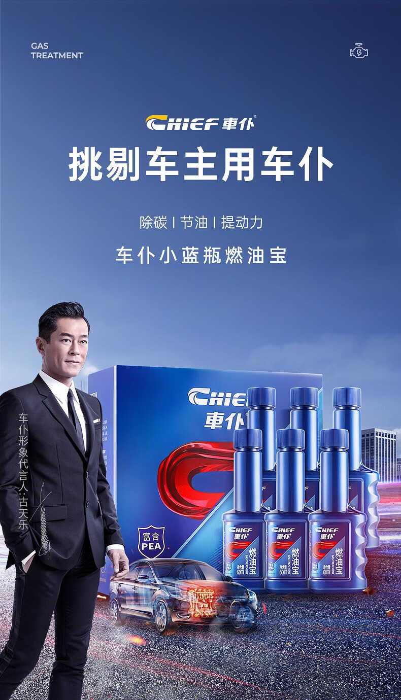 CHIEF Fuel Treasure Three-way Catalyst Fuel Injector Removes Carbon Deposits, Gasoline Additive Cleans Oil Circuit, Removes Carbon Inside the Engine, 6 Blue Bottles + 1 Blue Bottle (A Must for Car Owners)