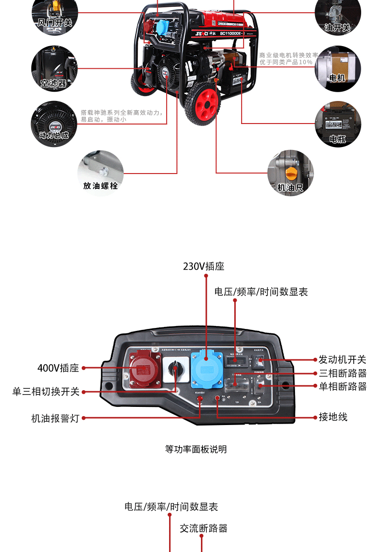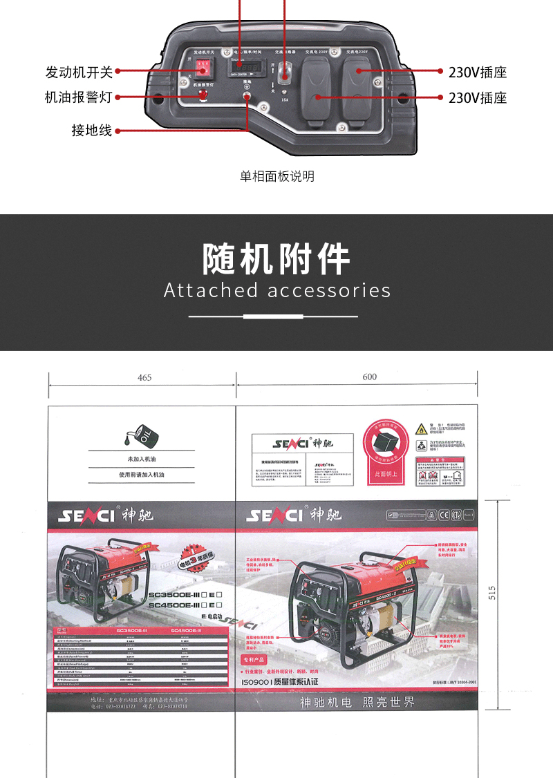 SENCI gasoline generator single-phase 220V three-phase 380 dual voltage commercial national standard 20KW industrial tower base station power 3200W 220V hand start