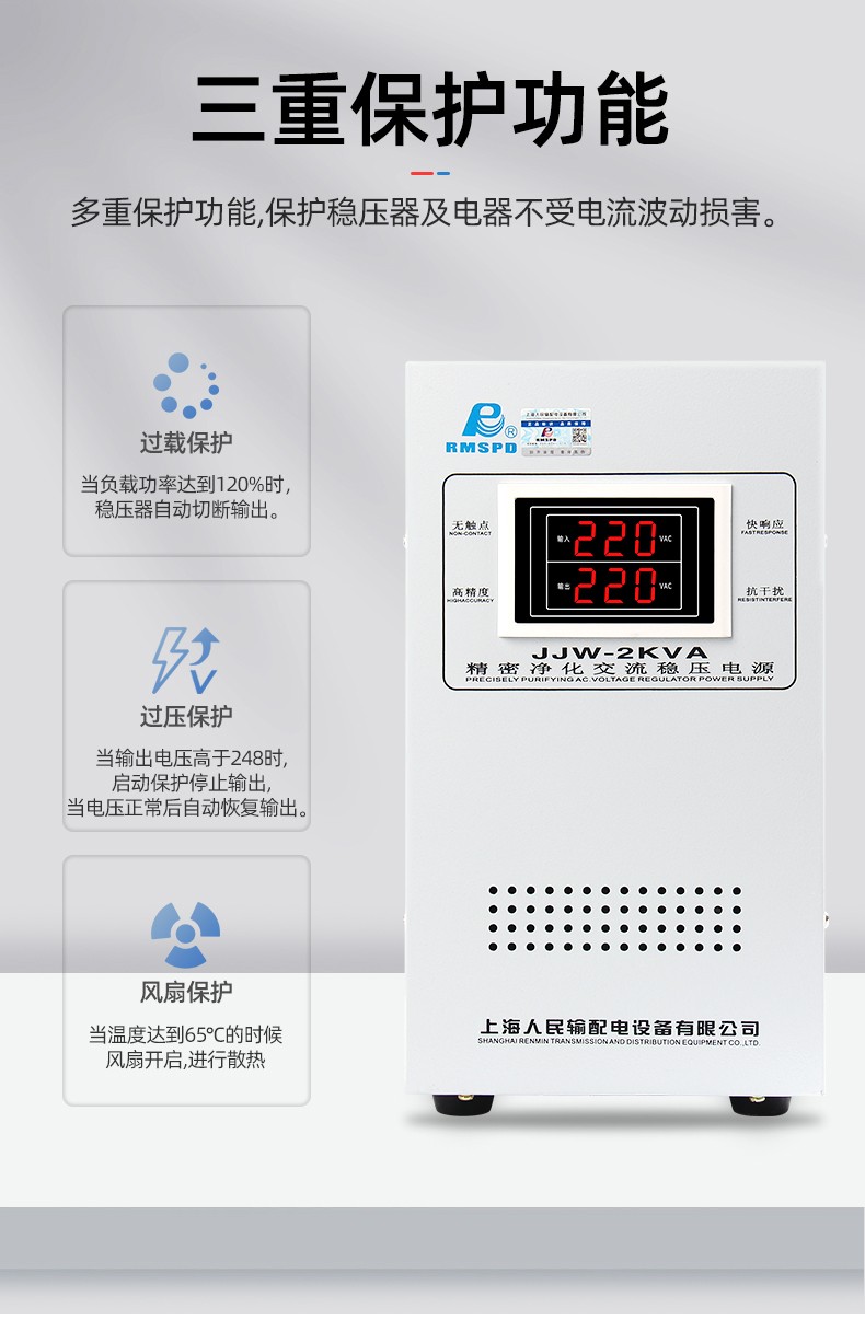 RMSPD Shanghai People's Precision Purification AC Regulated Power Supply JJW-10KVA Non-Contact Voltage Regulator 220V High Precision