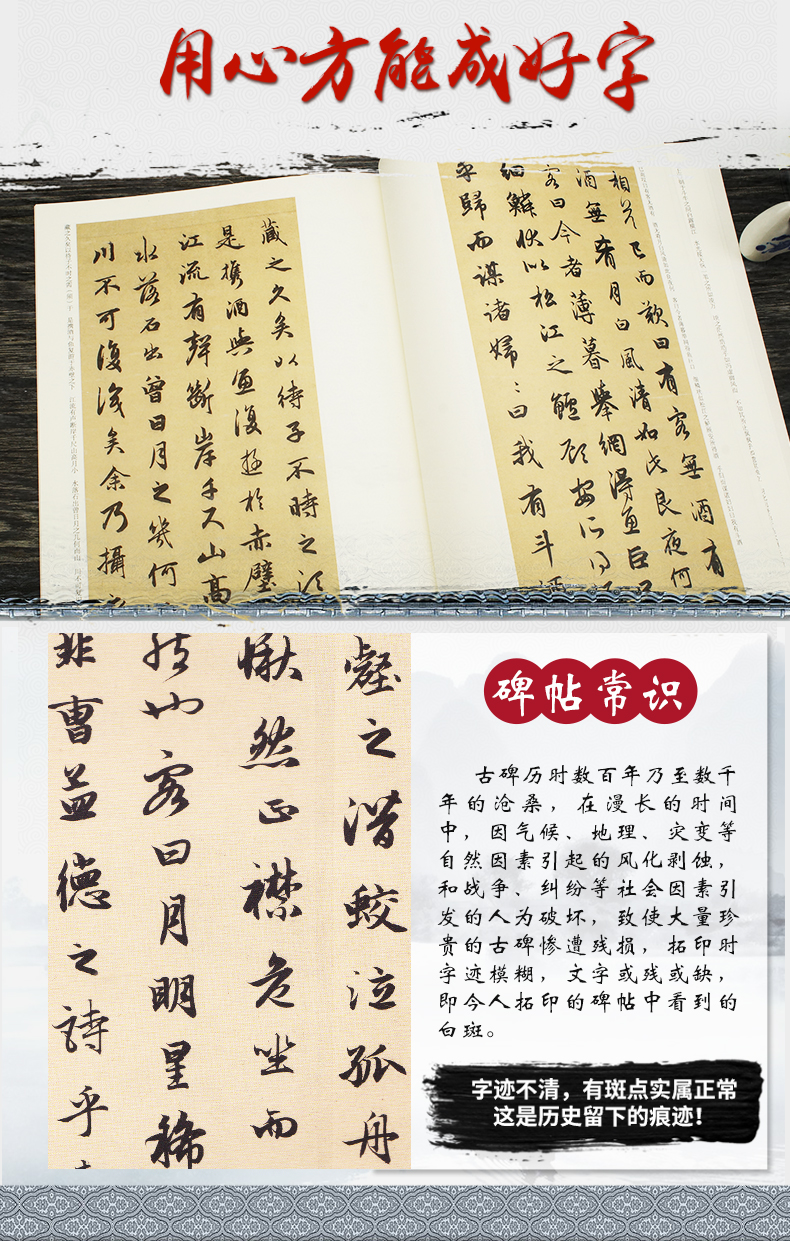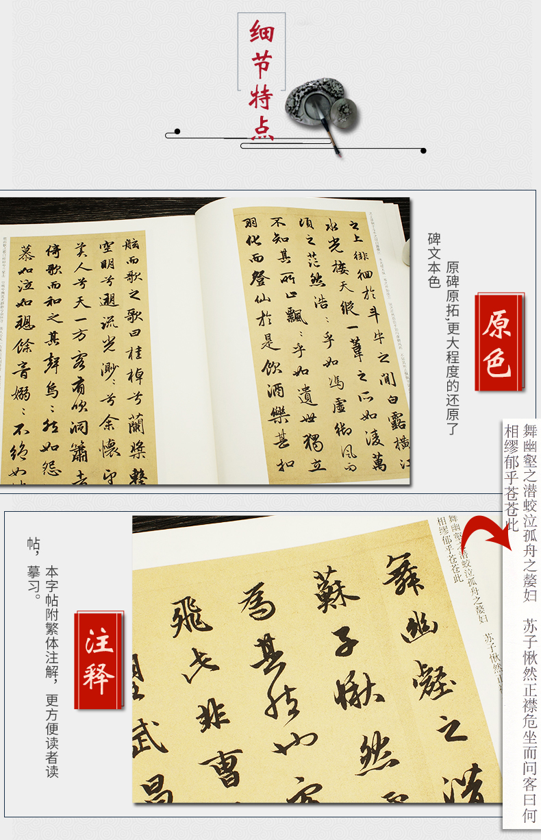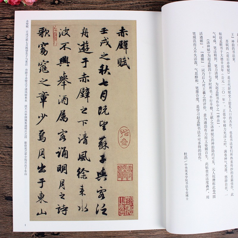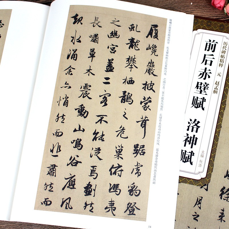 Chibi Fu before and after Zhao Mengfu, Luo Shen Fu, Yuan Dynasty, the essence of stele inscriptions, Zhao style running script calligraphy brush practice calligraphy, original inscriptions with simplified Chinese marginalia, Anhui Fine Arts Publishing House