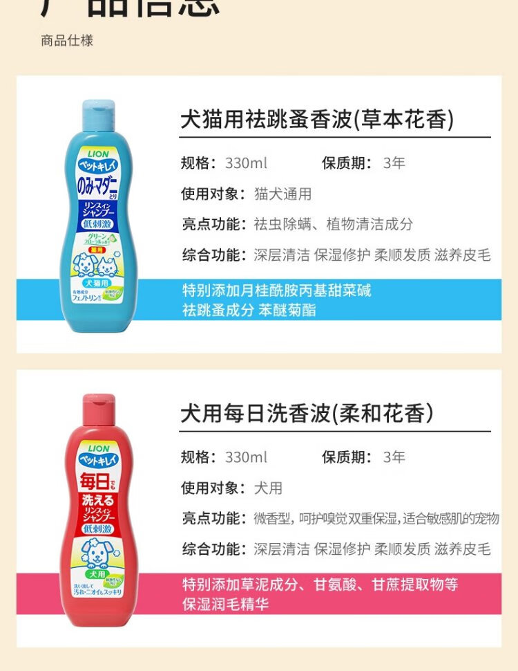 Lion King Lion King Ai Pet Pet Shower Gel Deodorizing and Deodorizing Herbal Fragrance 330ml Cat Skin Care and Cleansing Two-in-One