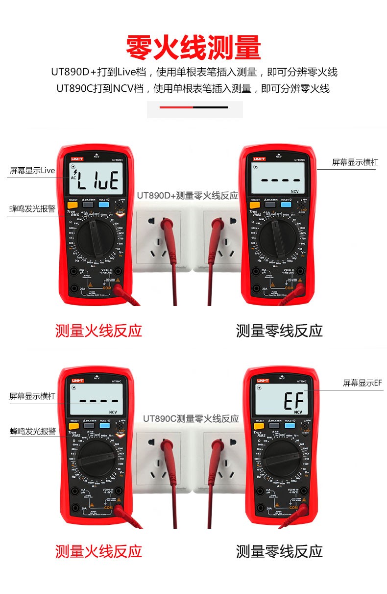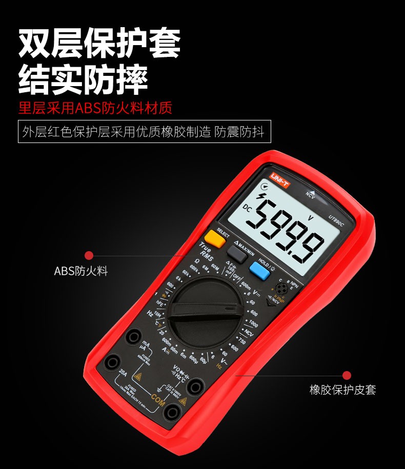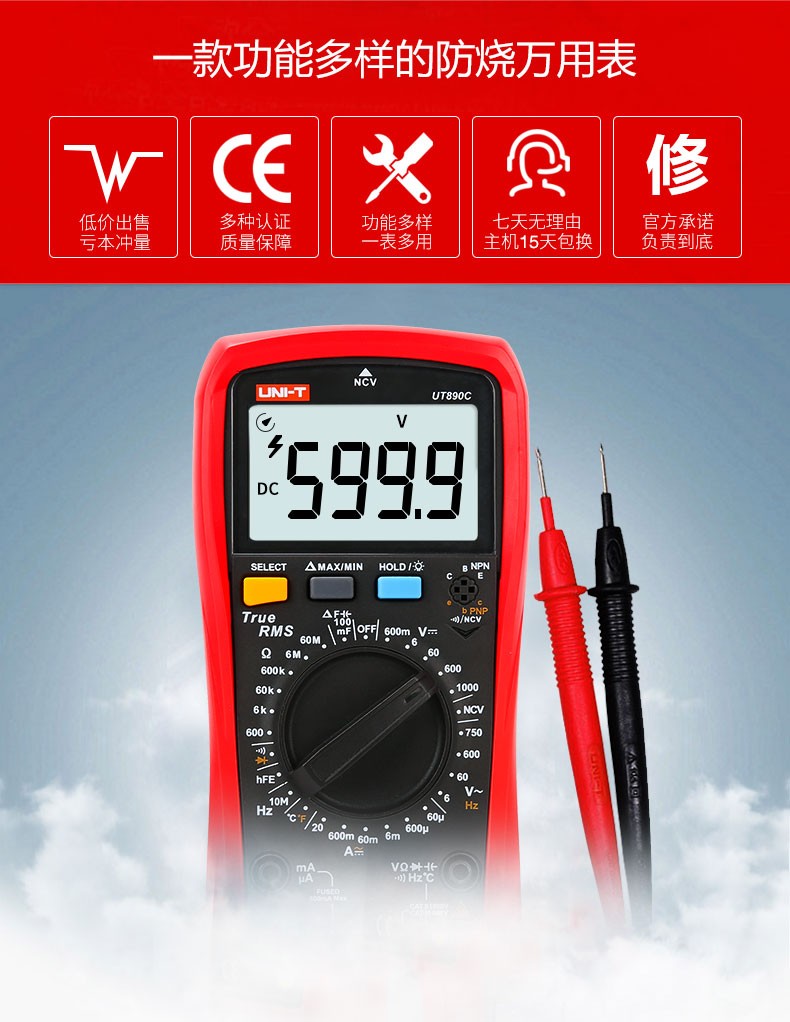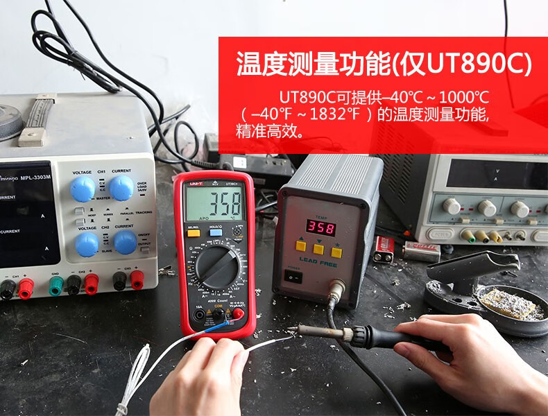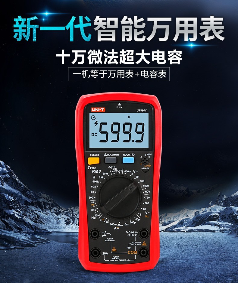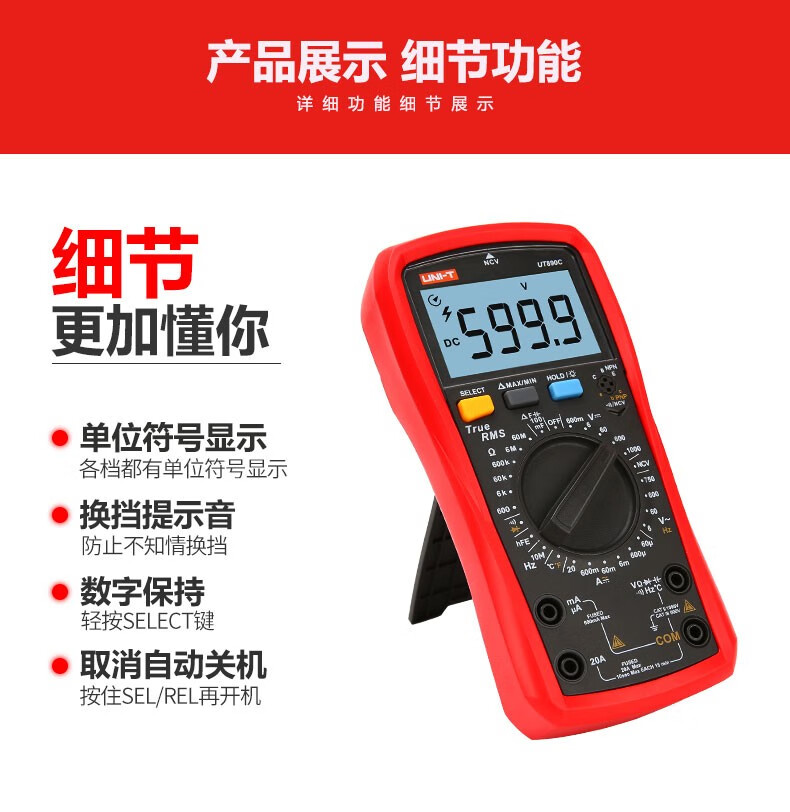 Uni-T digital multimeter UT890D digital display multi-function meter measuring voltage, ammeter, capacitance multi-meter, full range burn-proof UT890C (temperature measurement)