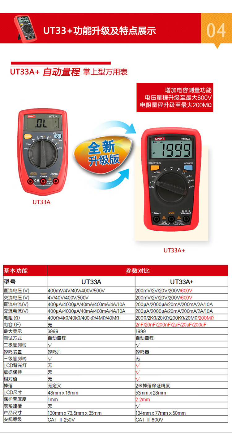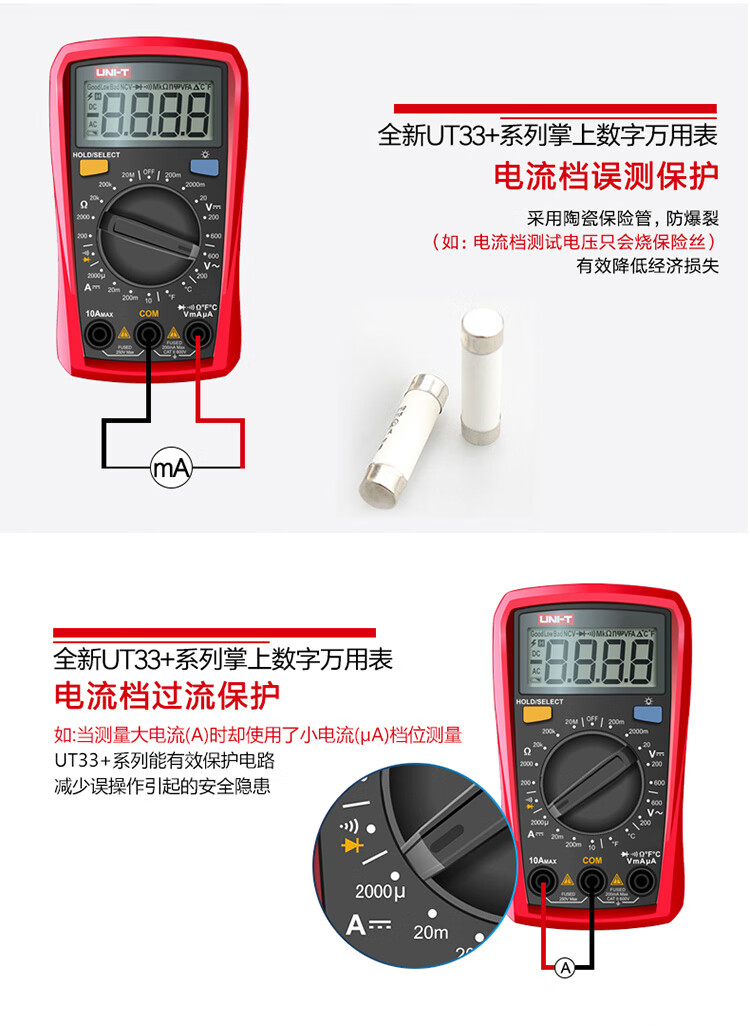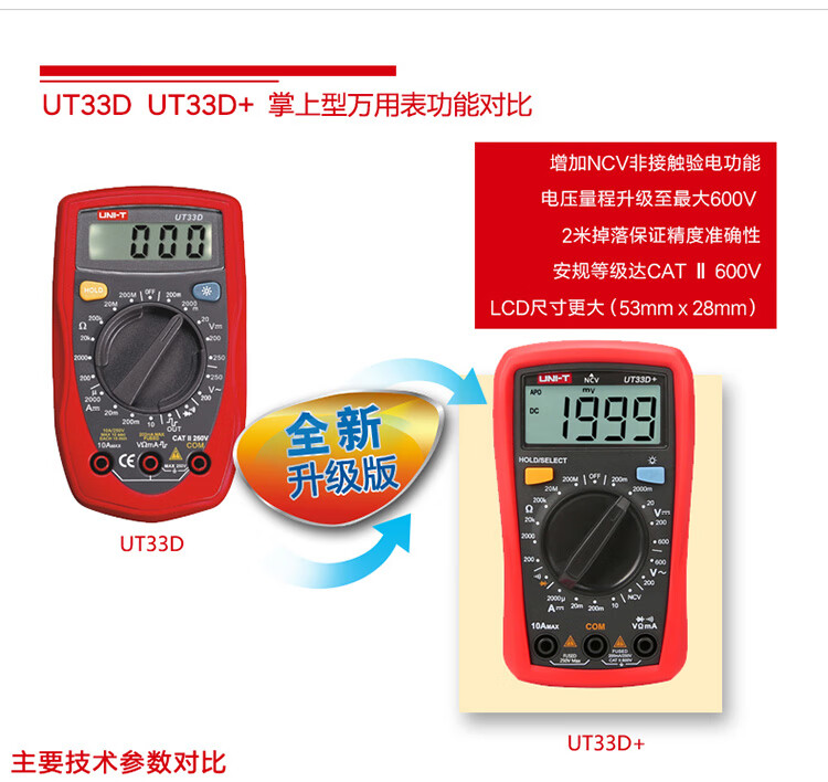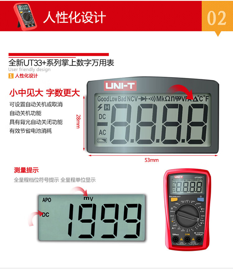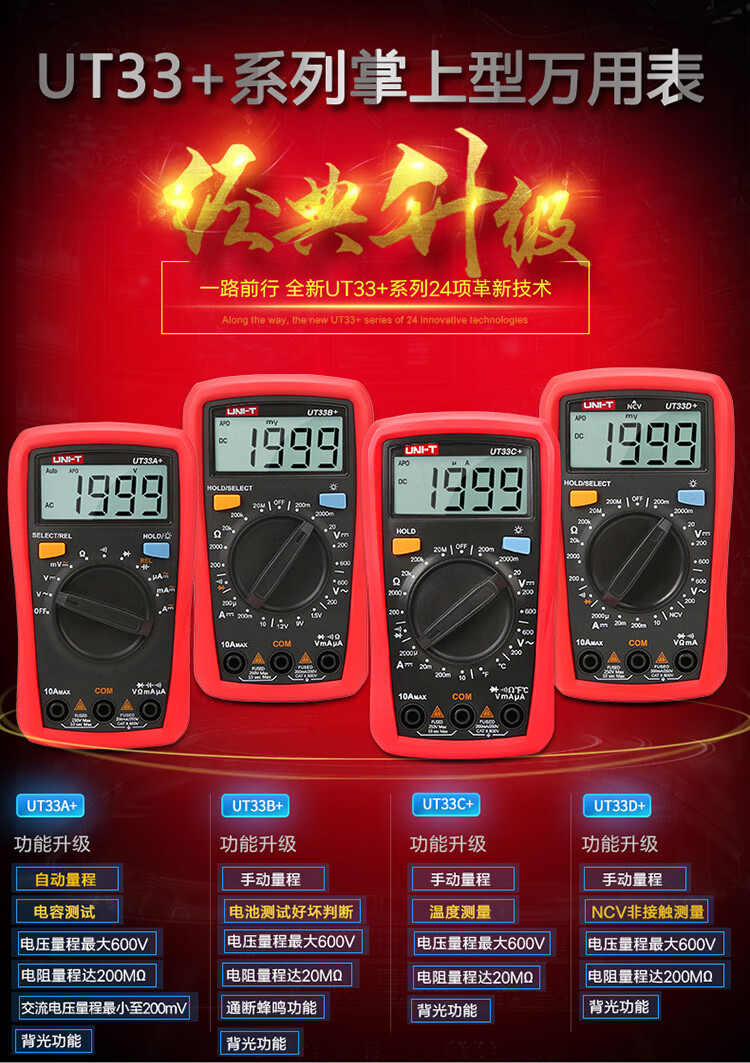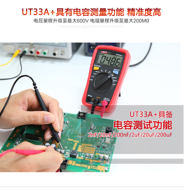 Uni-T UT33B+ mini multimeter high-precision intelligent anti-burn small portable electrician multimeter household UT33D+ UT33A+ (auto range/capacitance/ACA)