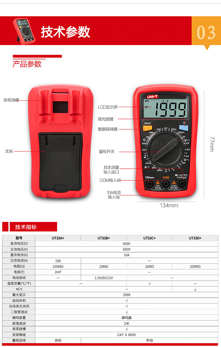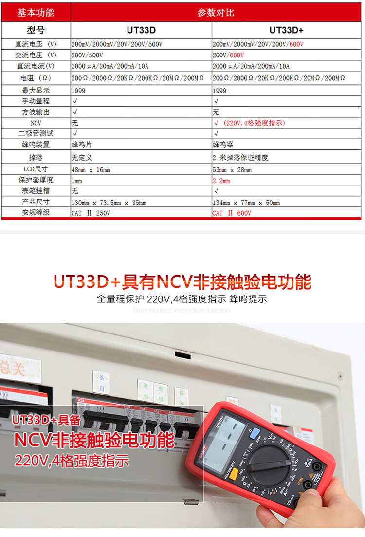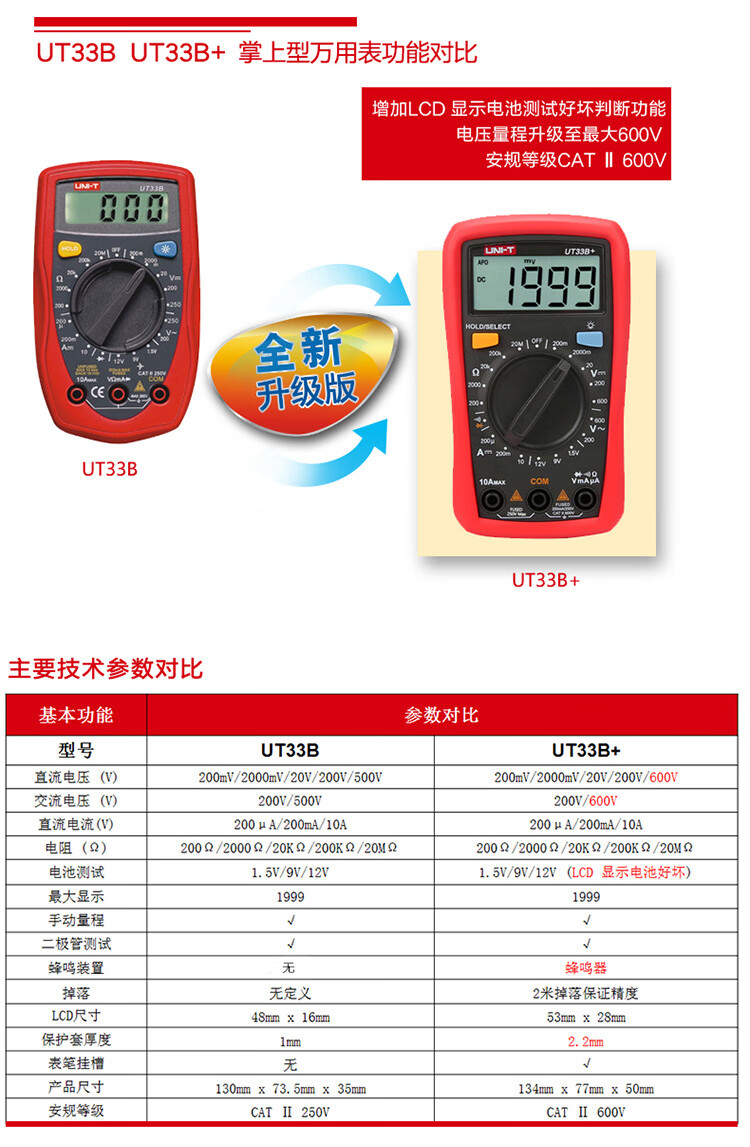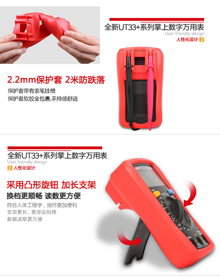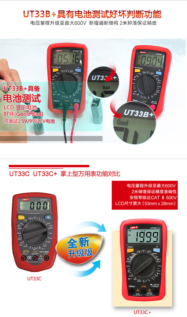 Uni-T UT33B+ mini multimeter high-precision intelligent anti-burn small portable electrician multimeter household UT33D+ UT33A+ (auto range/capacitance/ACA)