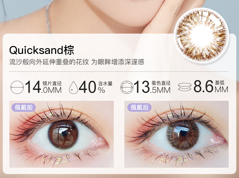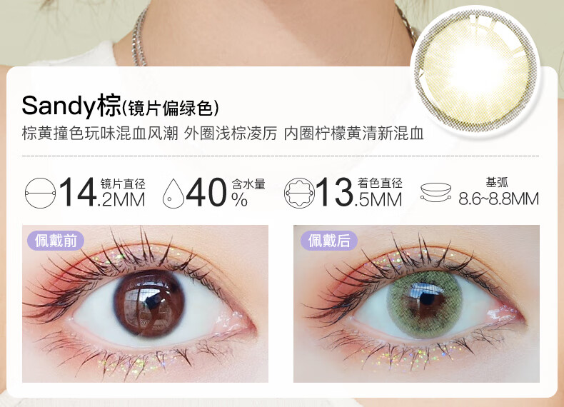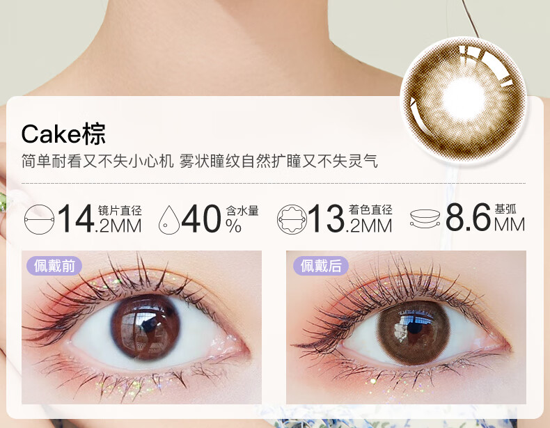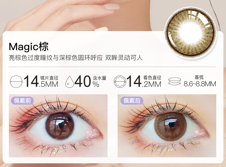 Merry dolly colored contact lenses, annual disposable 2 pieces, contact lenses, size and diameter, magic eye series, recommended Quicksand brown-daily light style, 0 degree
