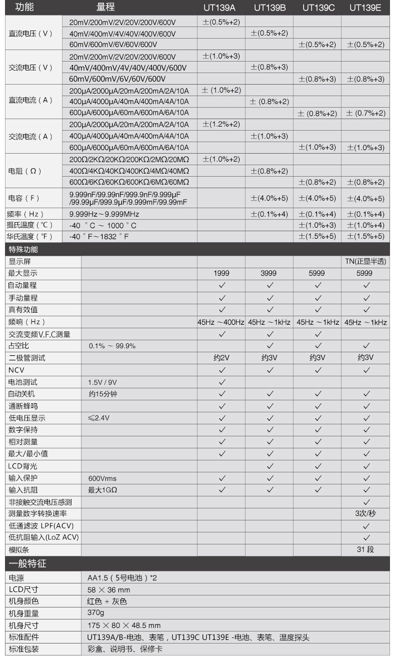 Uni-T multimeter UT139E digital high-precision multimeter anti-burn fully automatic electrician multimeter UT139A household UT139C (temperature)