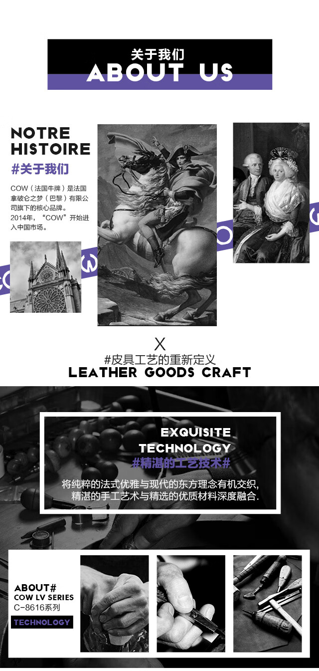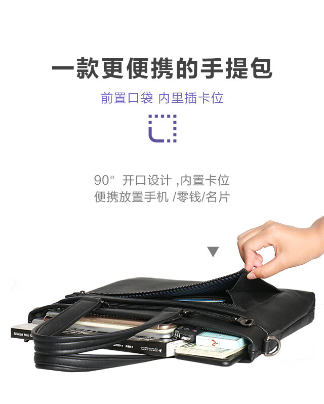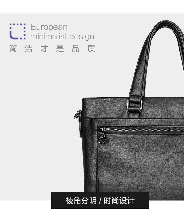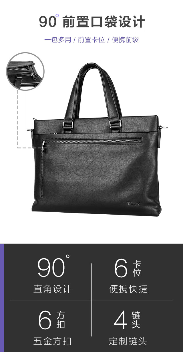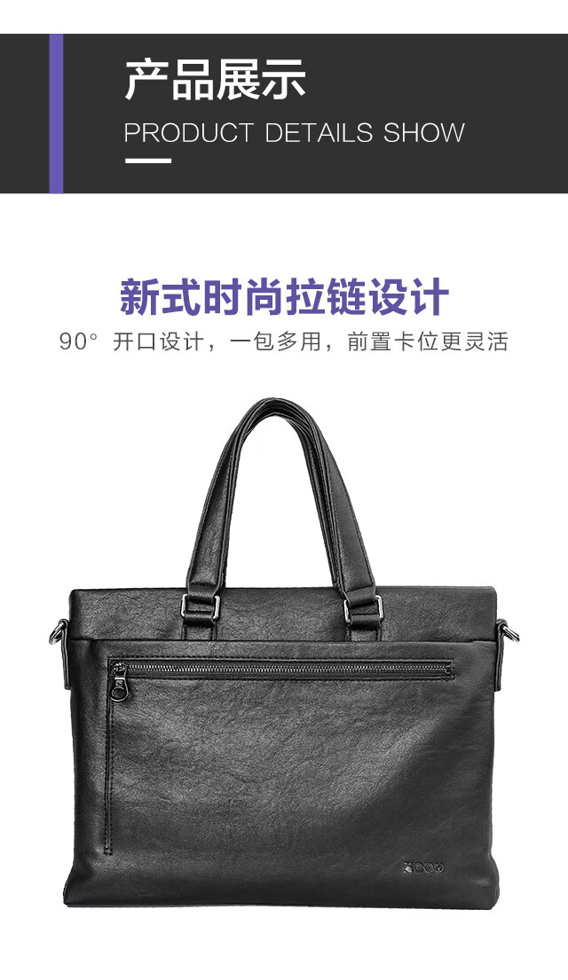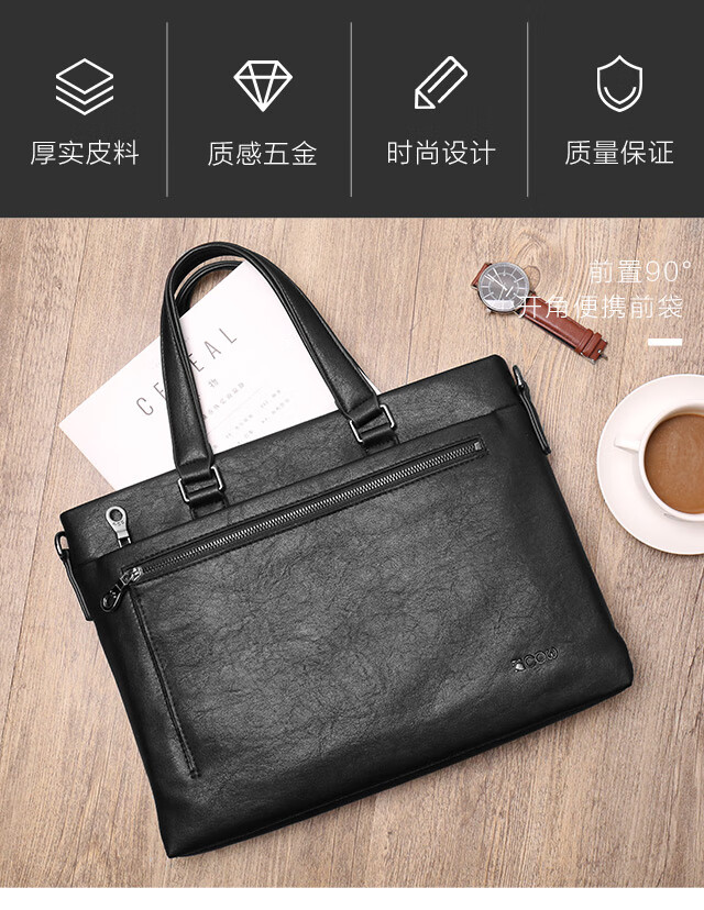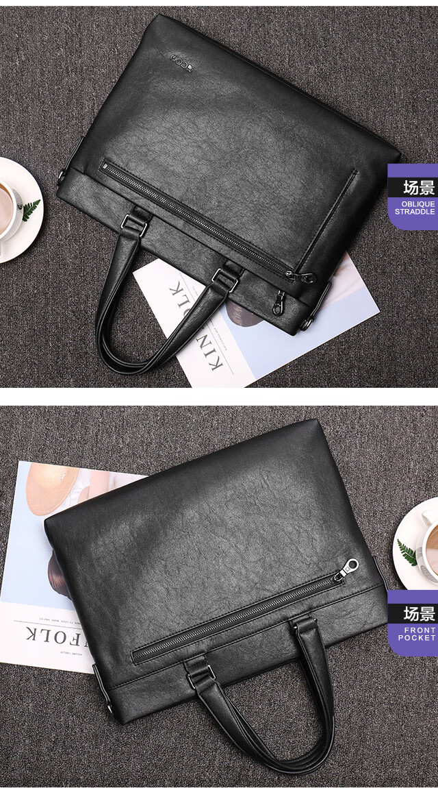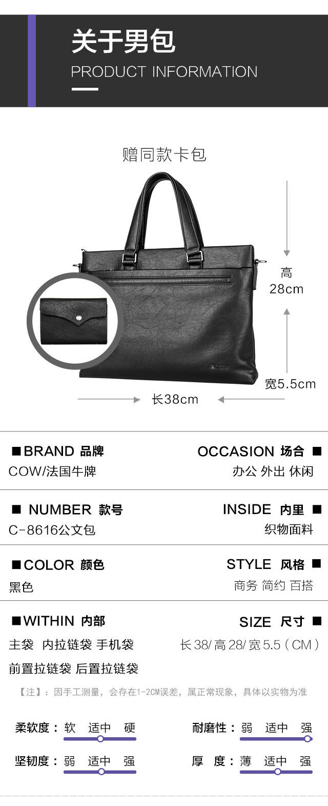 French COW men's bag briefcase men's business laptop bag casual shoulder crossbody travel backpack C-8616 briefcase black