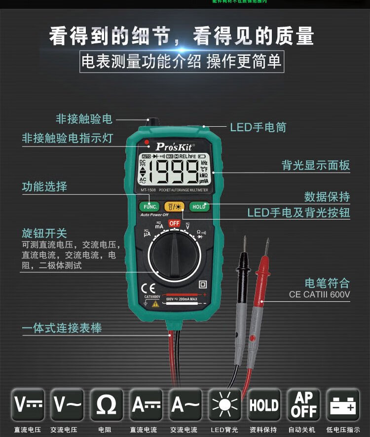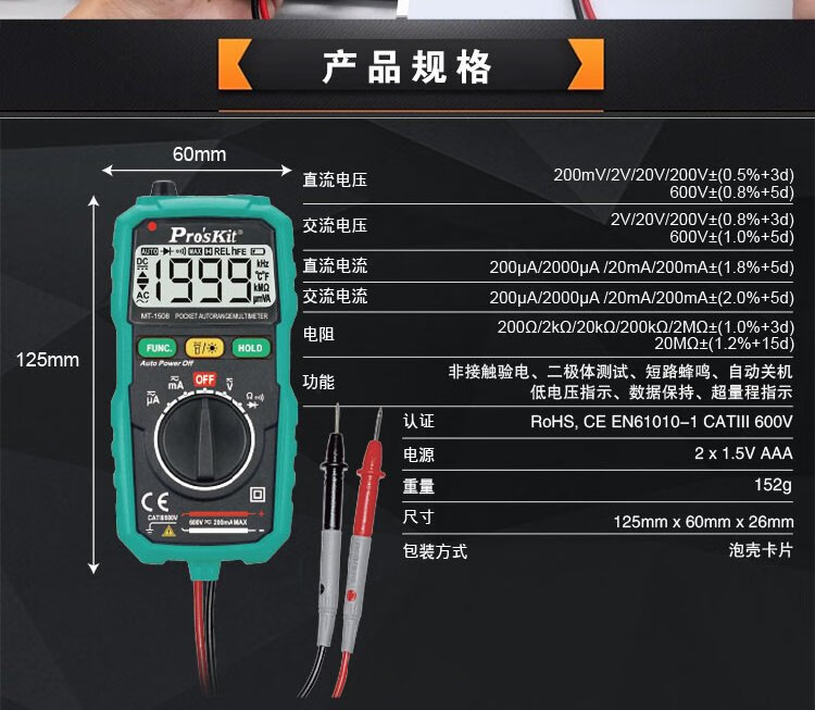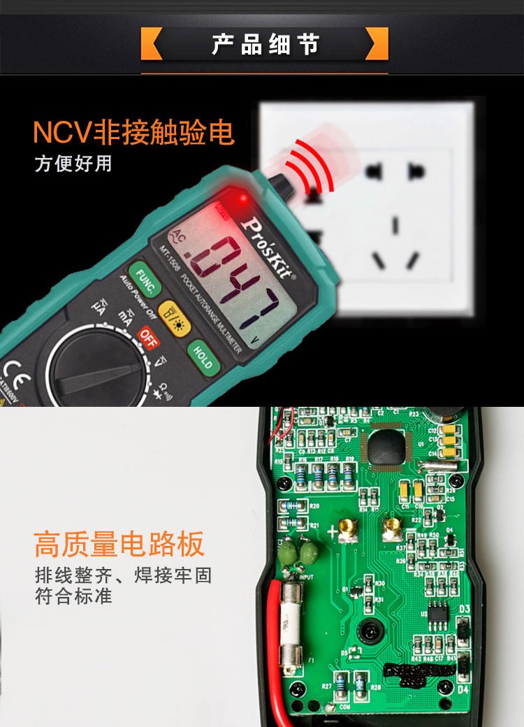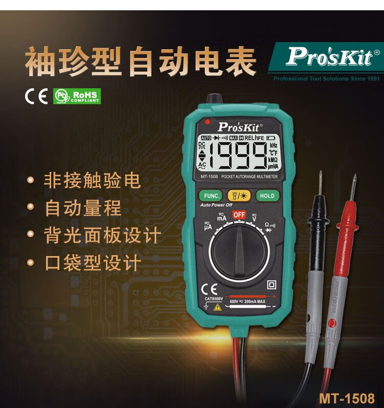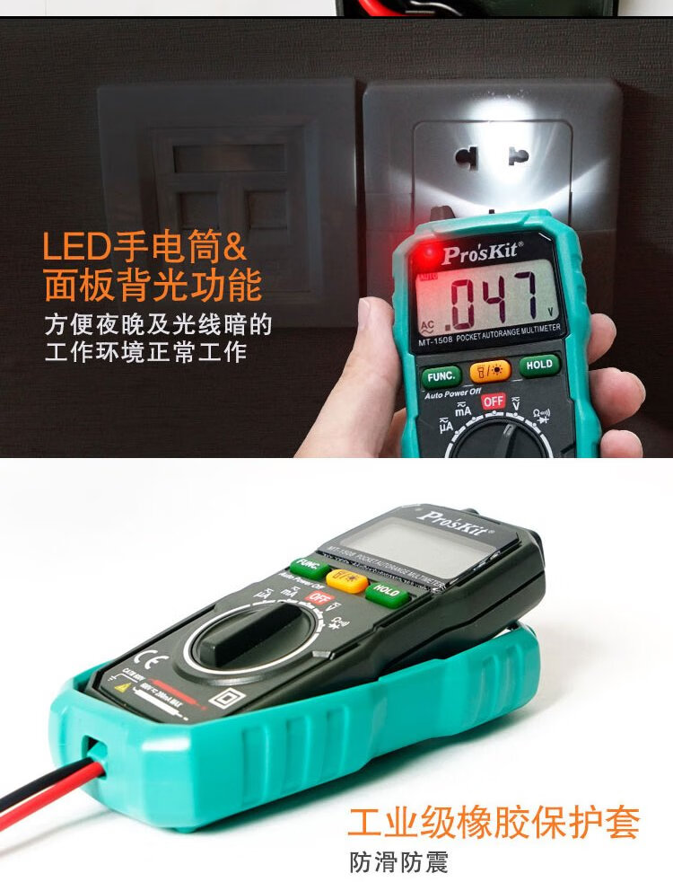 Baogong (Pro sKit) MT-1508 household small pocket automatic electricity meter voltmeter manual range digital multimeter