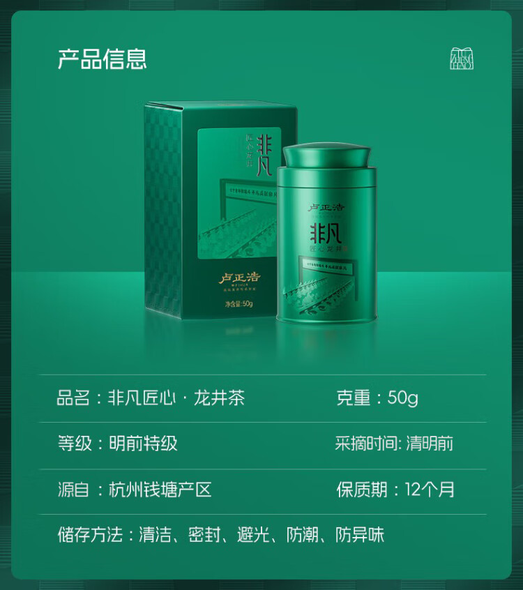 Lu Zhenghao Green Tea Ingenious Cold Brew Longjing Tea Special Grade 50g 2025 New Tea Mingqian Longjing Tea Canned Gift for Self-Drinking