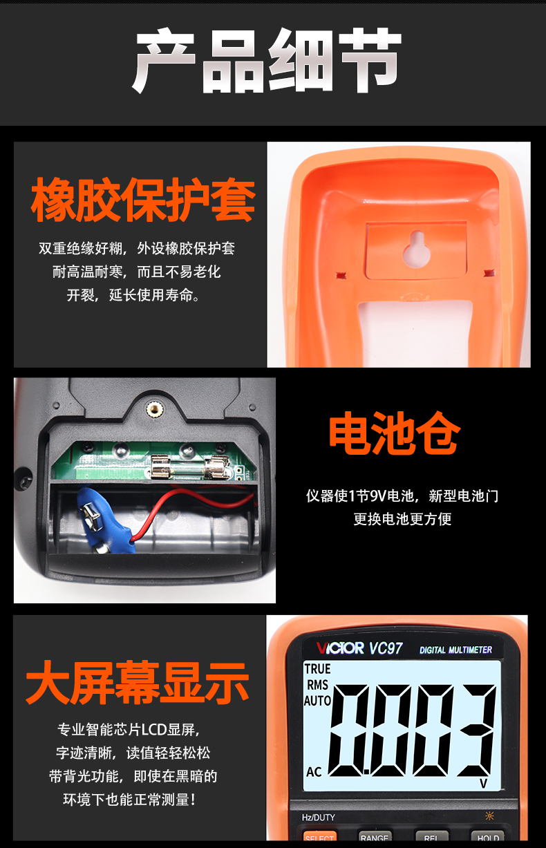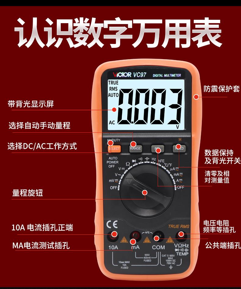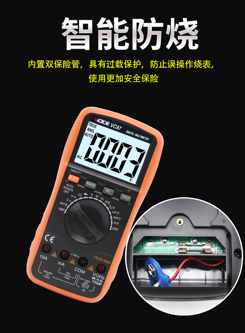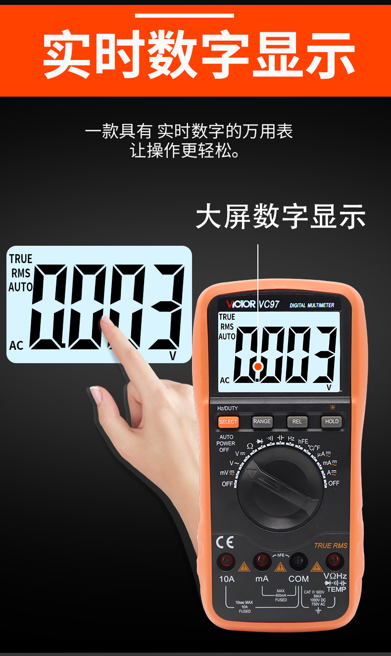 Victory Instrument (VICTOR) multimeter digital high-precision fully automatic household electrician multi-function digital display multimeter capacitance meter measuring instrument VC97 standard