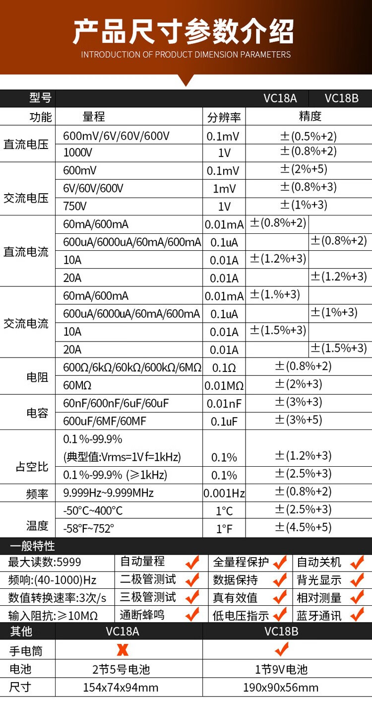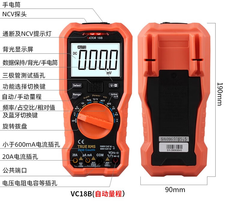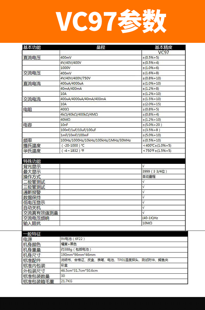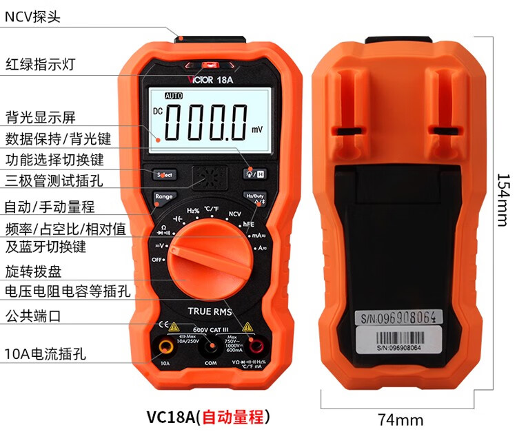 Victory Instrument (VICTOR) multimeter digital high-precision fully automatic household electrician multi-function digital display multimeter capacitance meter measuring instrument VC97 standard