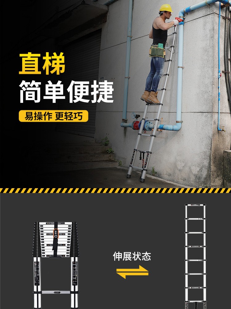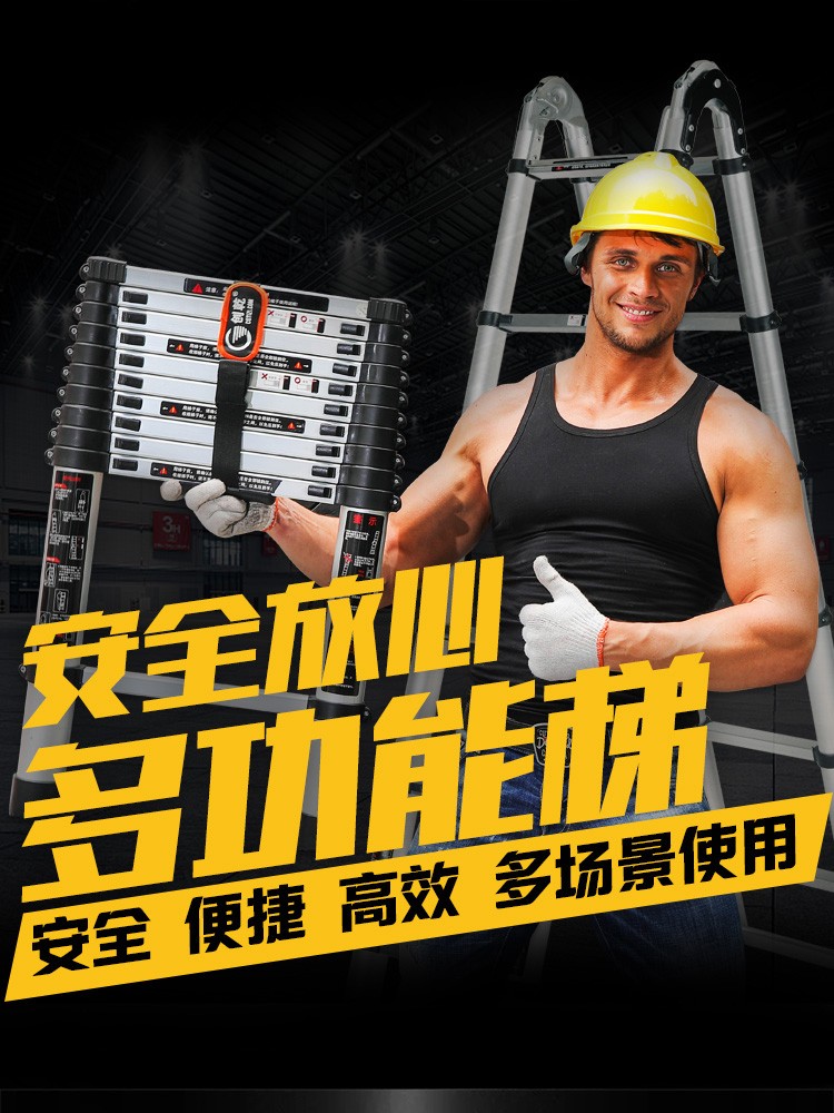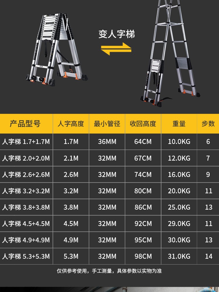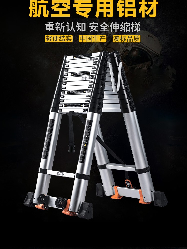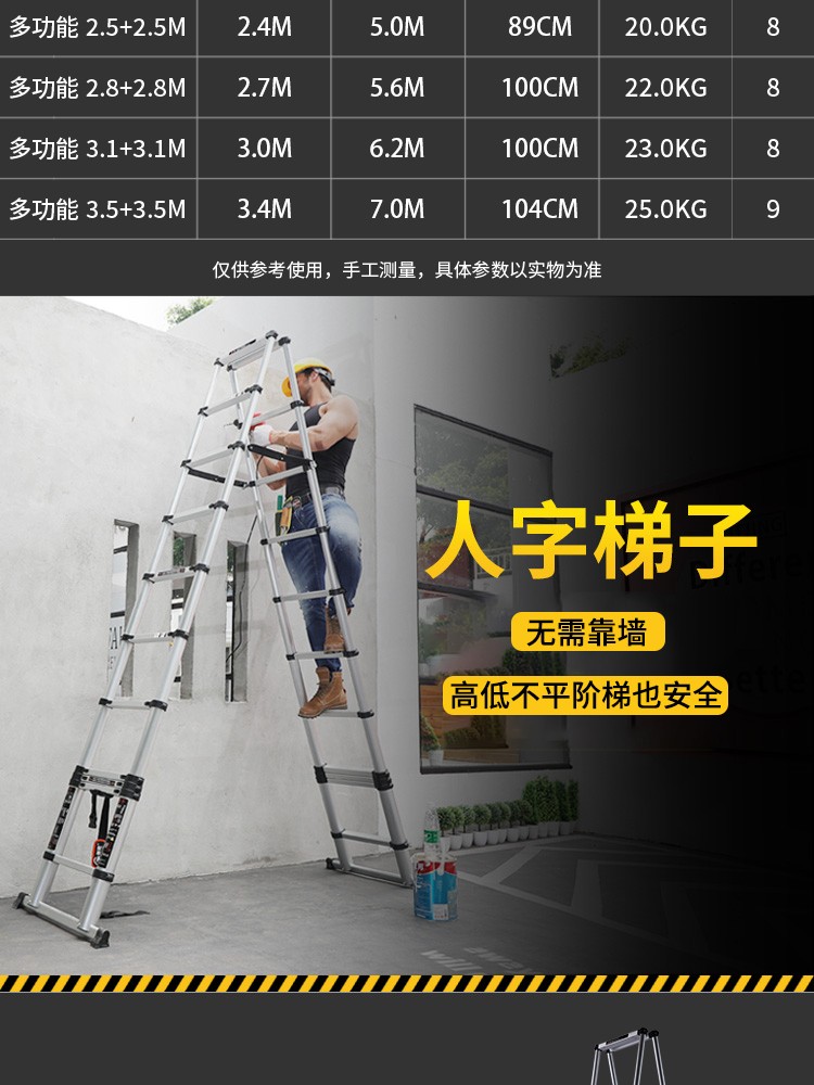 Household herringbone ladder telescopic ladder thickened multi-functional aluminum alloy engineering folding staircase lifting ladder climbing straight ladder outdoor 234567 meters Australian standard telescopic folding herringbone ladder 3.2 meters