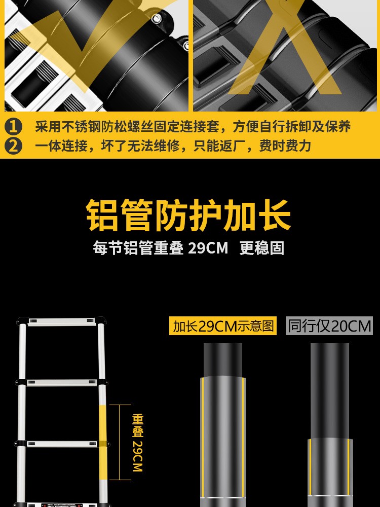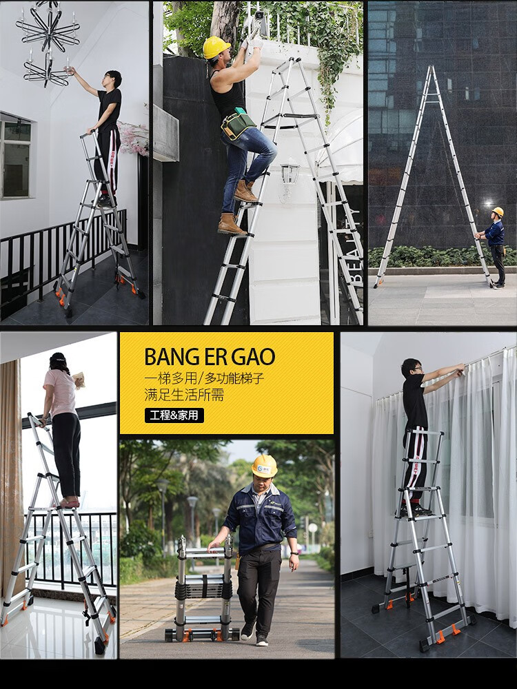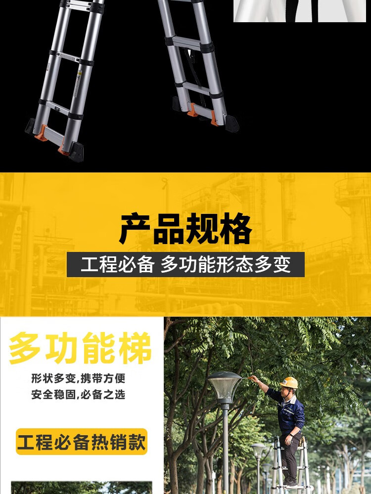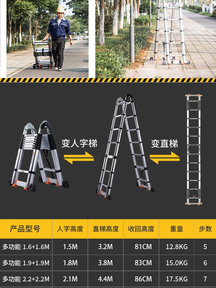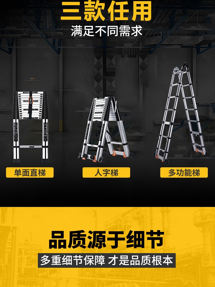 Household herringbone ladder telescopic ladder thickened multi-functional aluminum alloy engineering folding staircase lifting ladder climbing straight ladder outdoor 234567 meters Australian standard telescopic folding herringbone ladder 3.2 meters