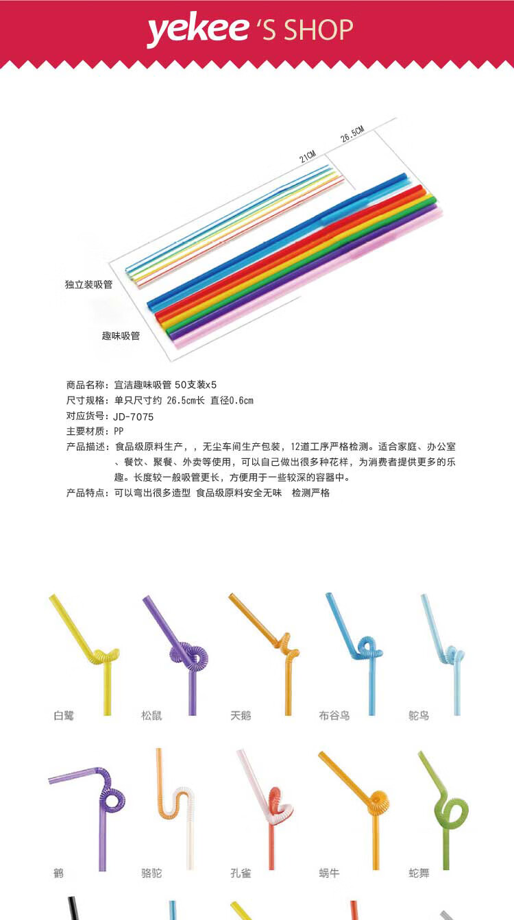 Yekee Disposable Straws 250 Pack Fun Art Straws JD-7075