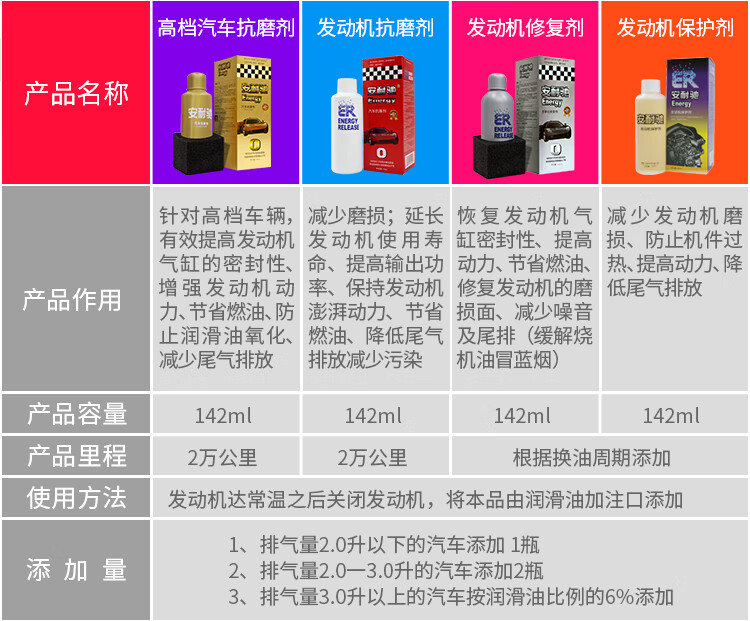 Energy Oil Additive Engine Anti-Wear Agent Red Pack 142ml Automotive Supplies