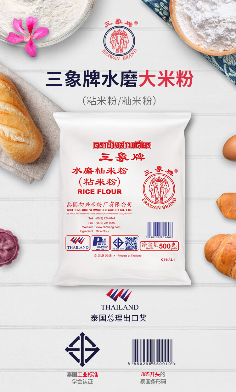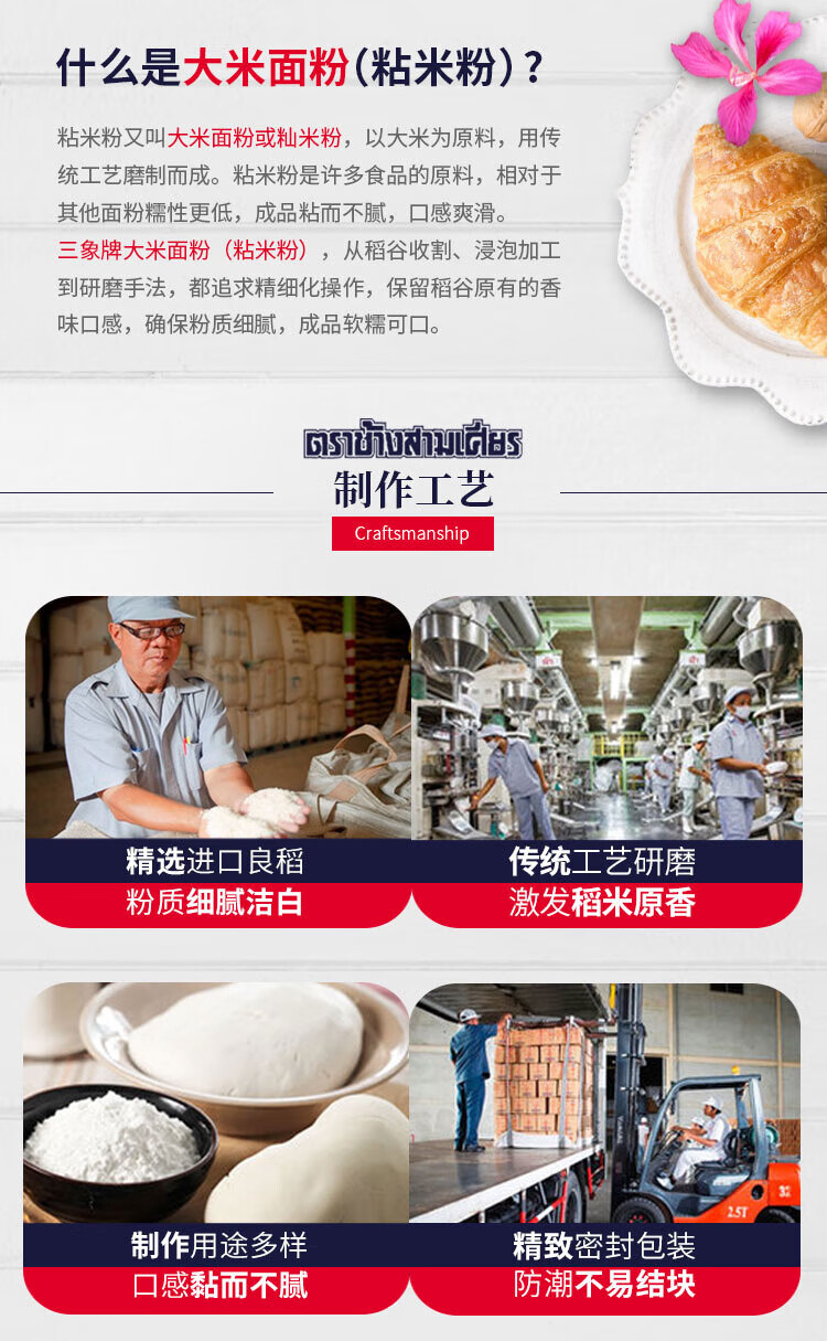 Sanxiang water-milled indica rice flour (sticky rice flour) rice roll special rice rice cake radish cake raw material 500g imported from Thailand