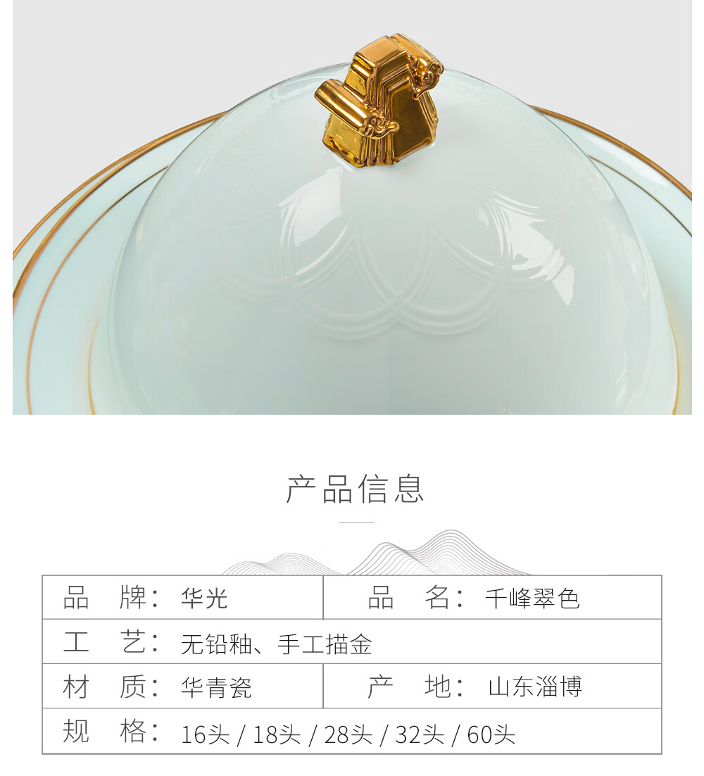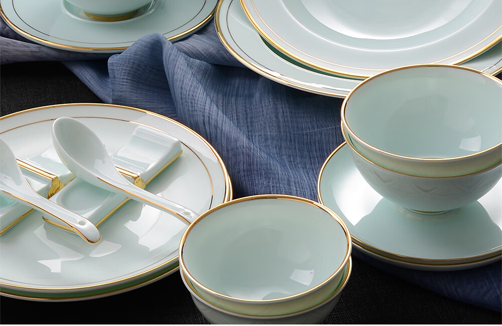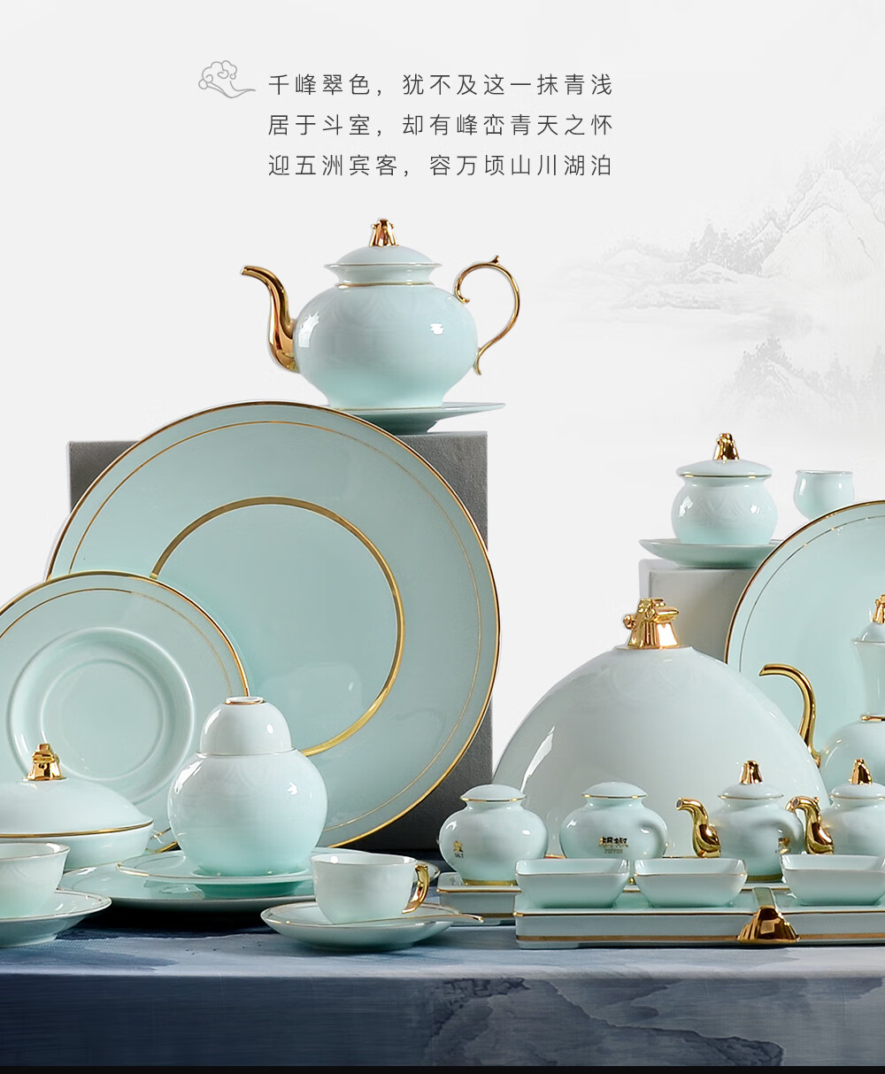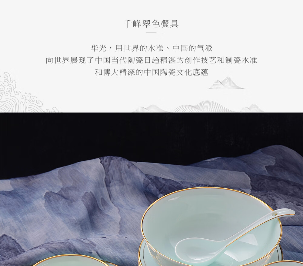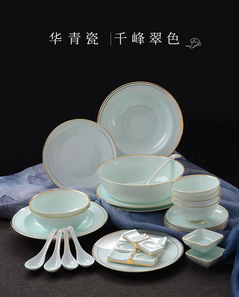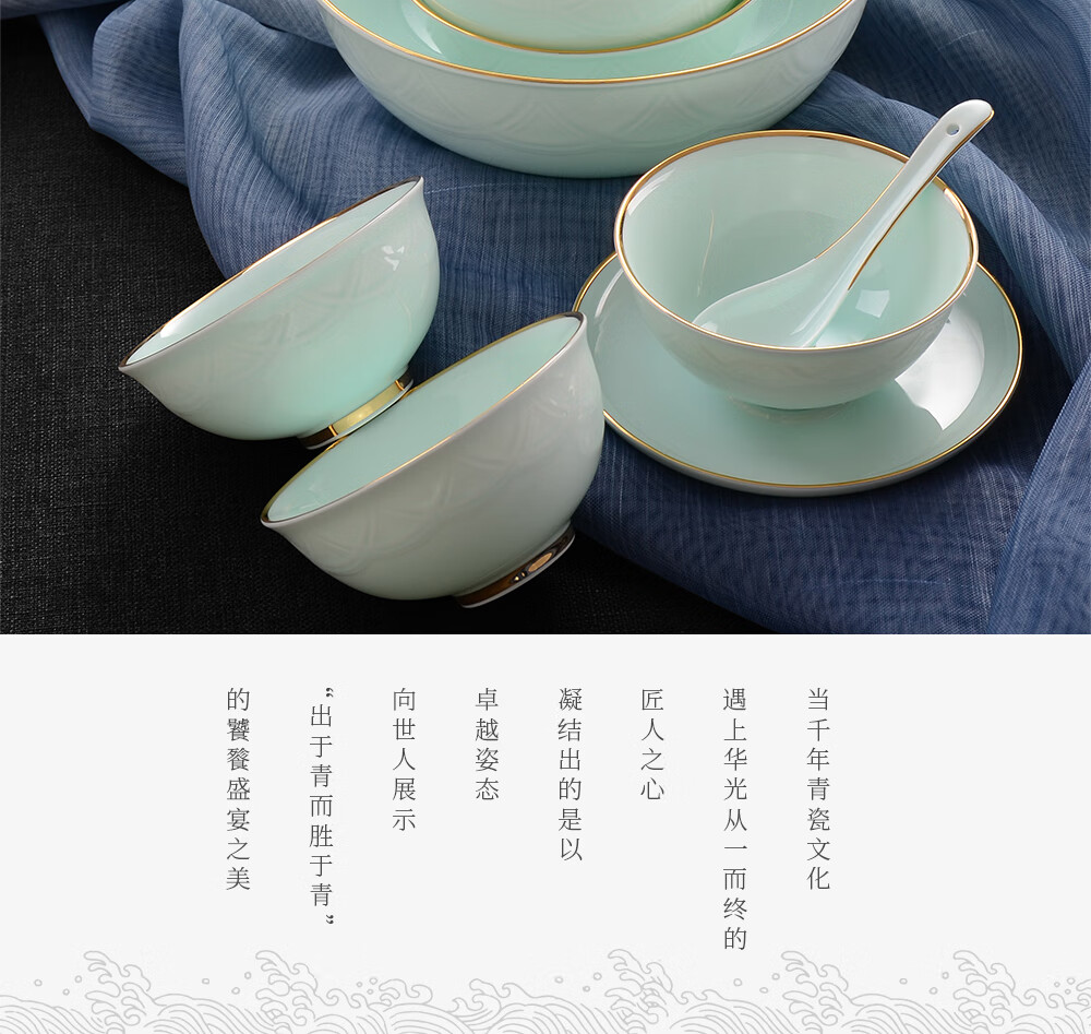 Huaguang National Porcelain Chinese style celadon tableware set Hua celadon bowl and plate set Qianfeng green bone china tableware 16-piece gift box