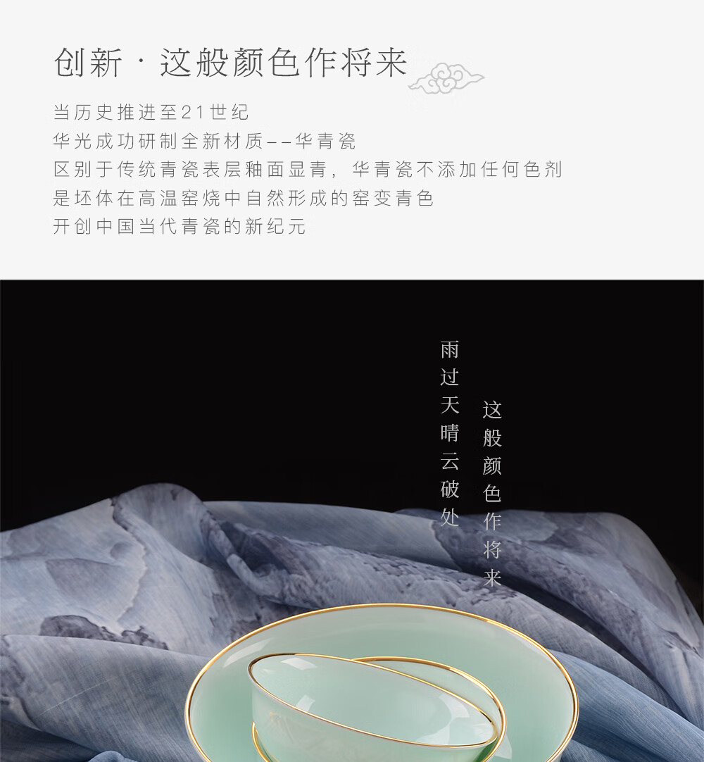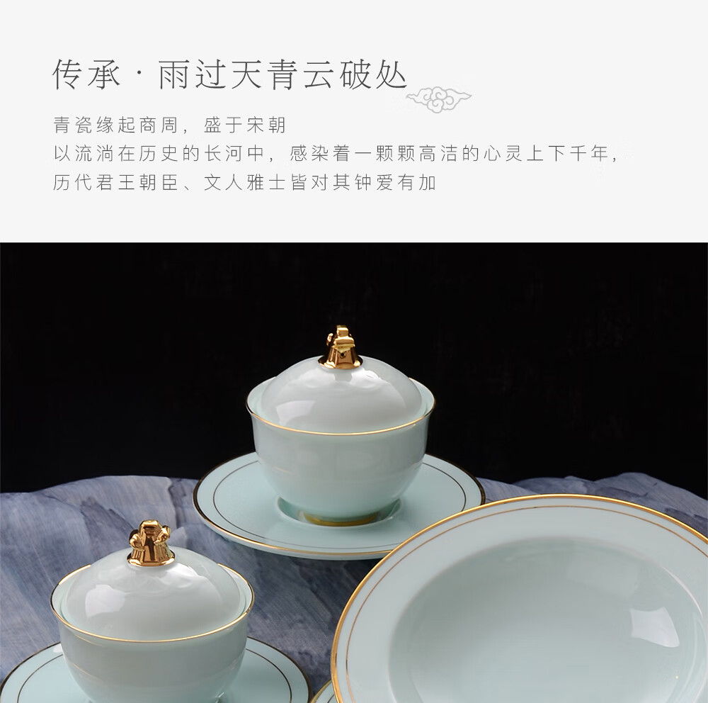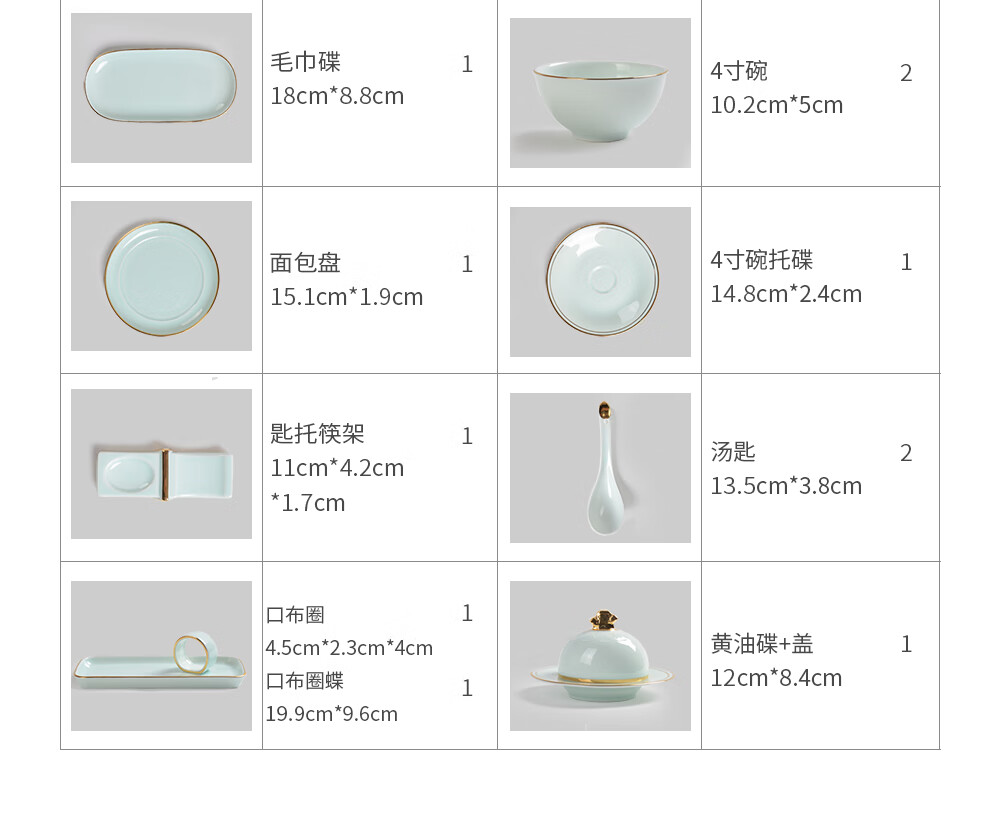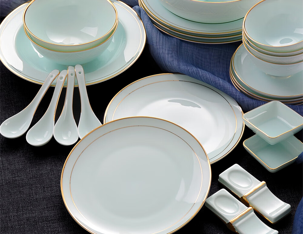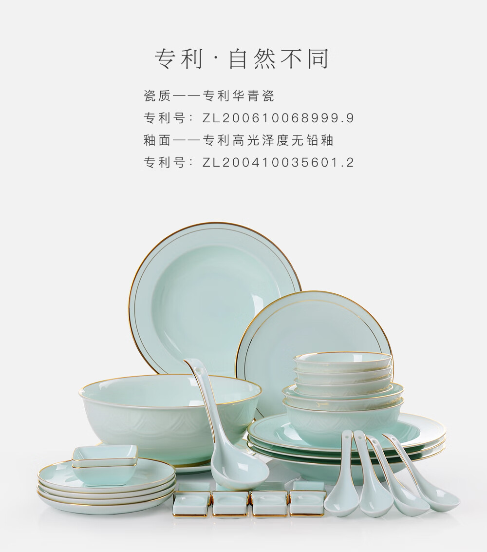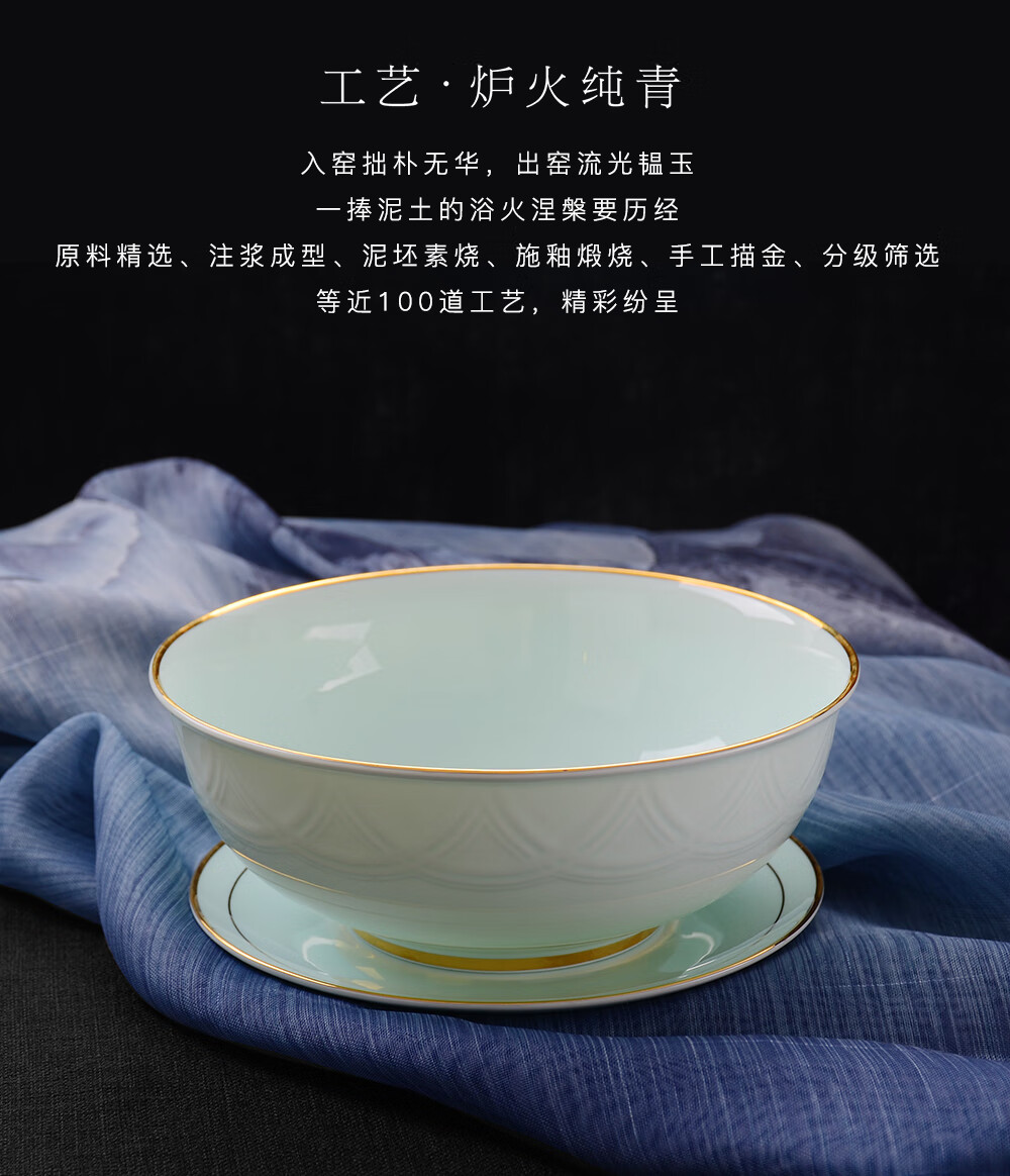 Huaguang National Porcelain Chinese style celadon tableware set Hua celadon bowl and plate set Qianfeng green bone china tableware 16-piece gift box