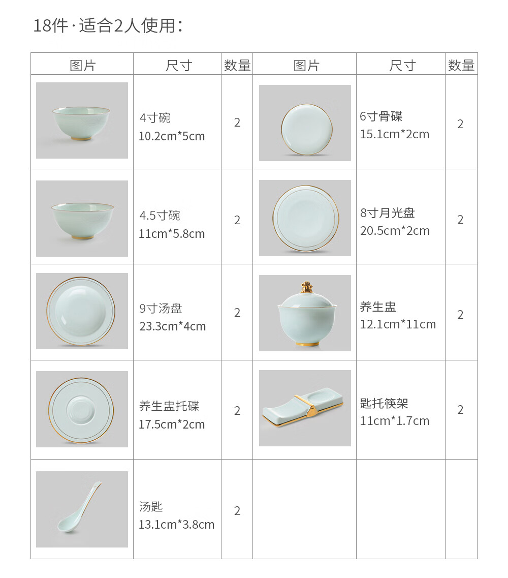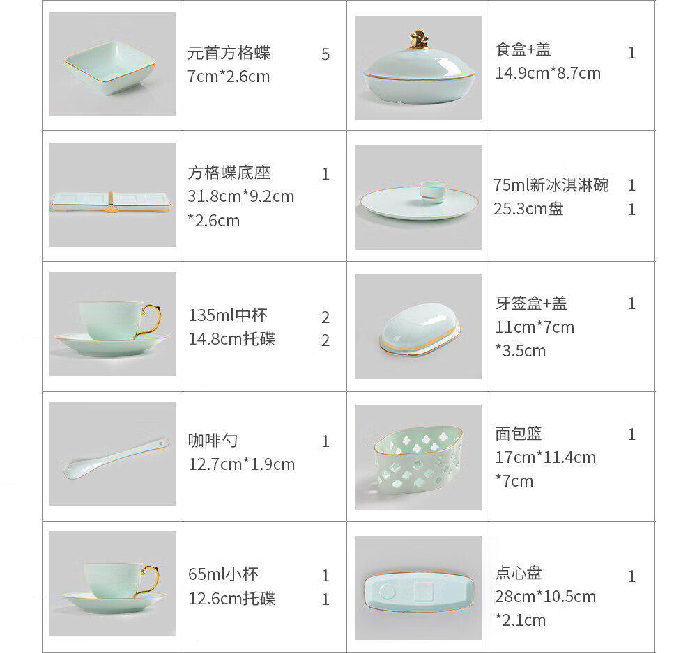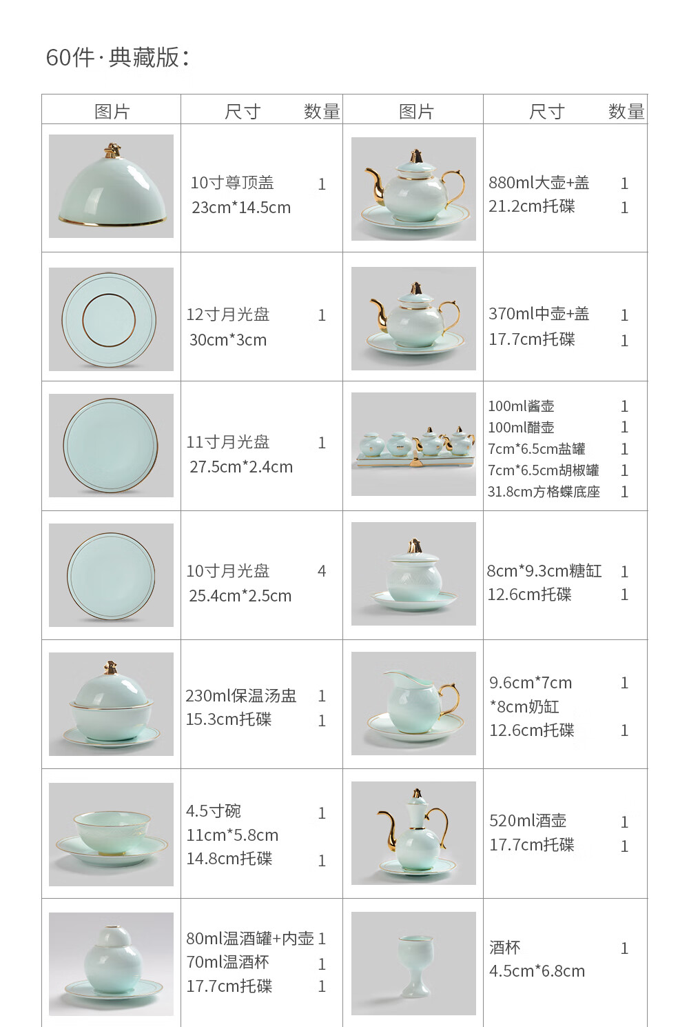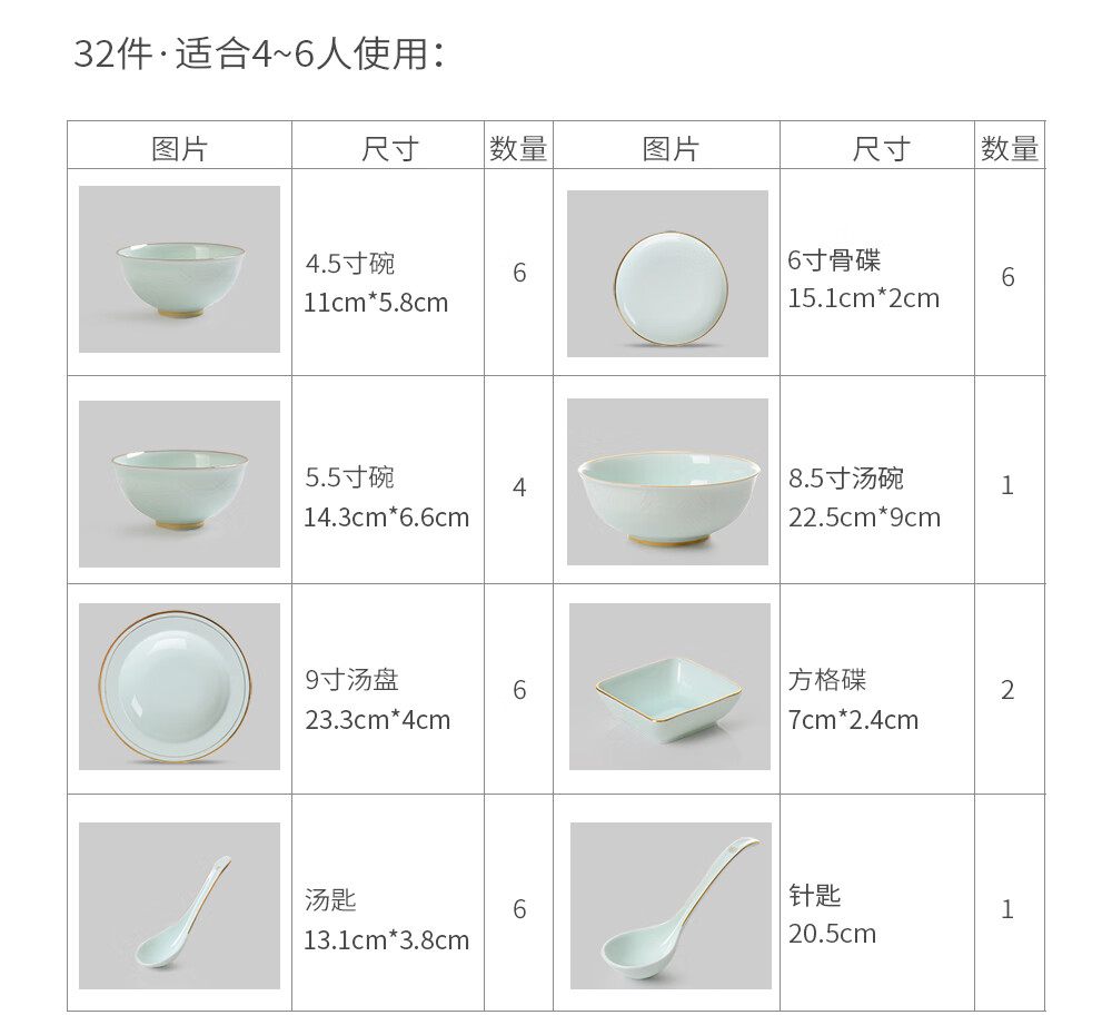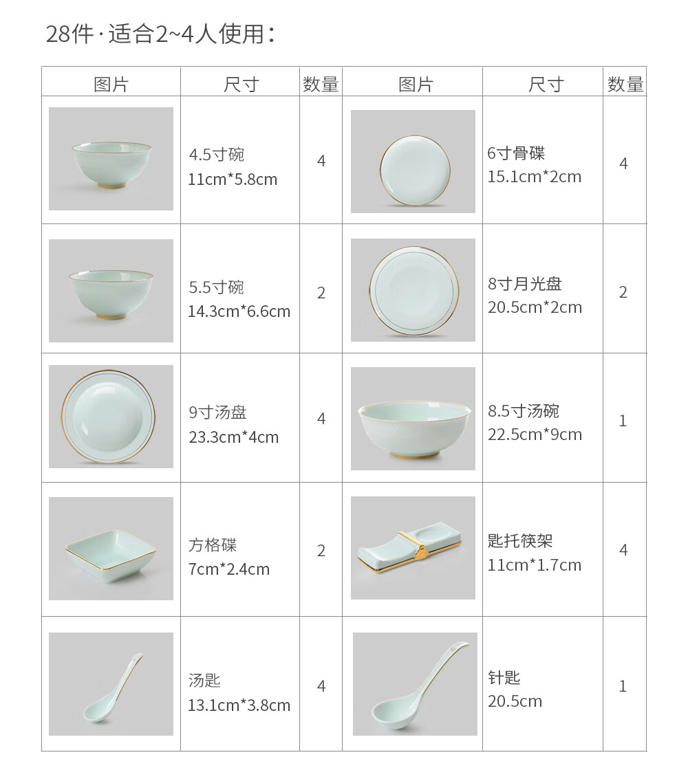 Huaguang National Porcelain Chinese style celadon tableware set Hua celadon bowl and plate set Qianfeng green bone china tableware 16-piece gift box