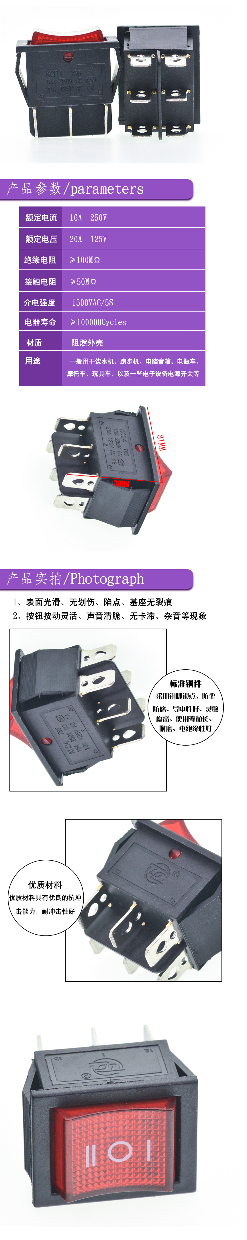 TaoTimeClub KCD4 red with light 3-speed 6-pin 3-speed 6-pin 16A power supply rocker boat switch double pole double throw