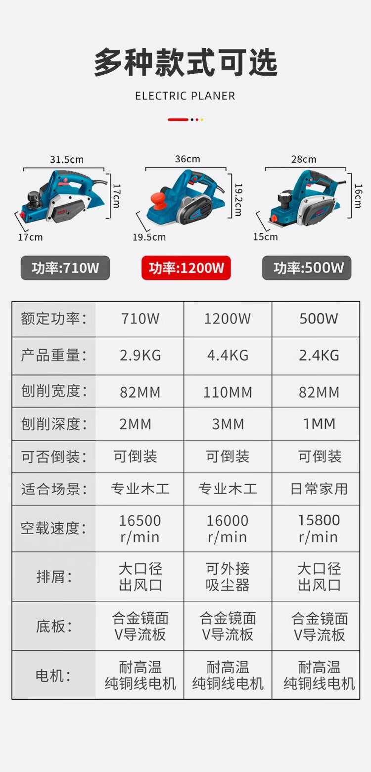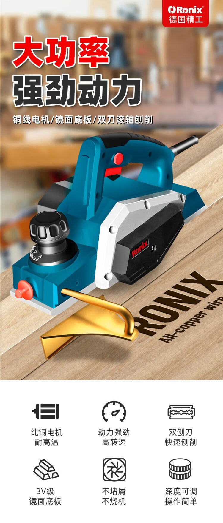 Ronix German (Ronics) electric planer woodworking planer electric planer woodworking tool collection hand electric planer electric pusher planer small household woodworking electric planer gift pack 1