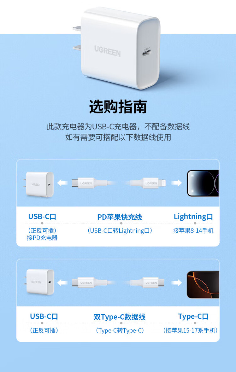 Greenlink 20W charger is suitable for Apple 17 charging head Type-C gallium nitride fast charging iPhone17ProMax/16Plus/15/iPad tablet Xiaomi Huawei mobile phone fast charging