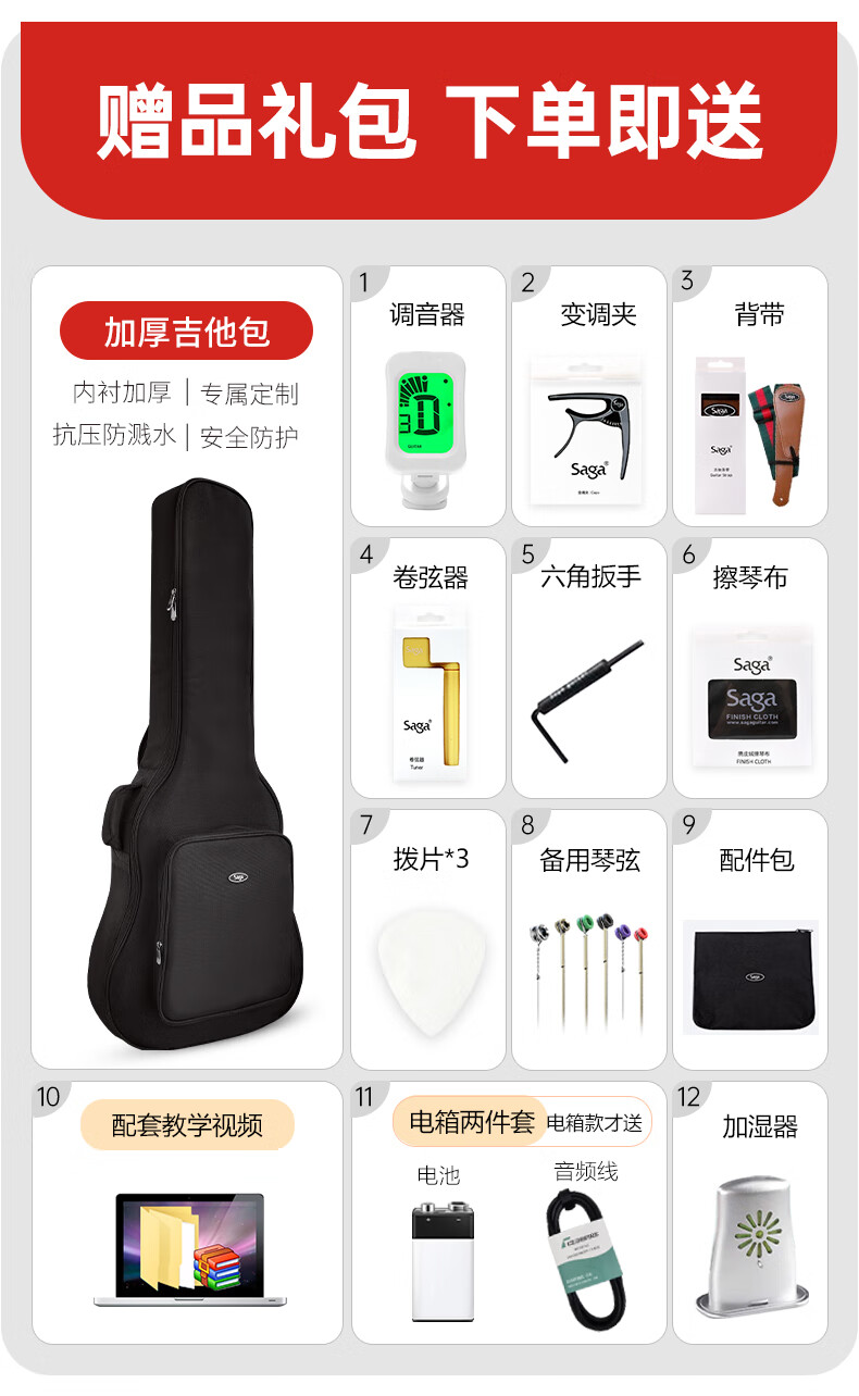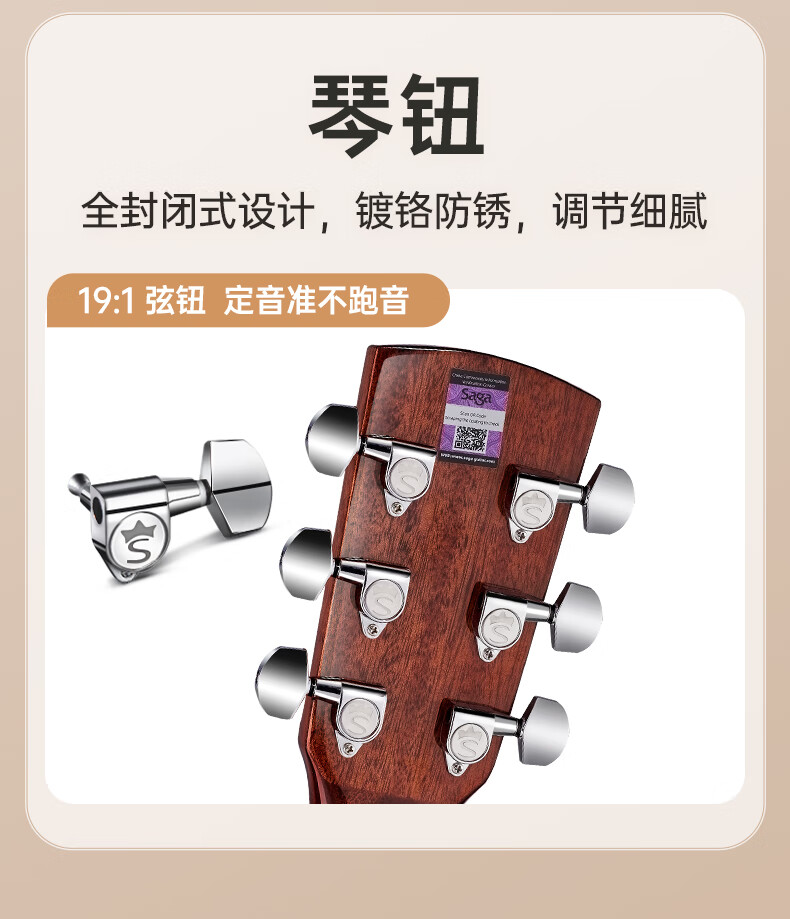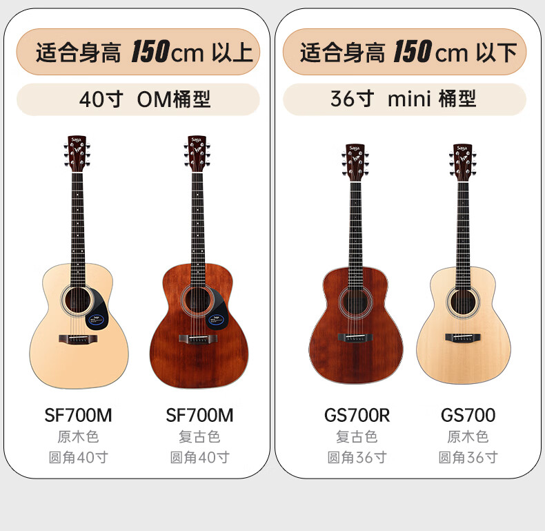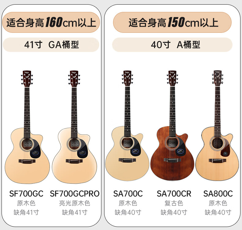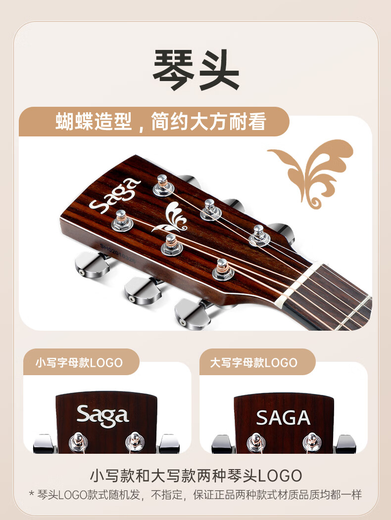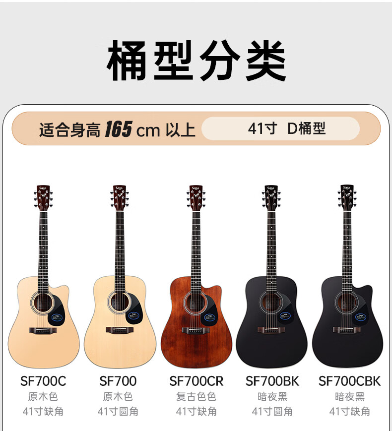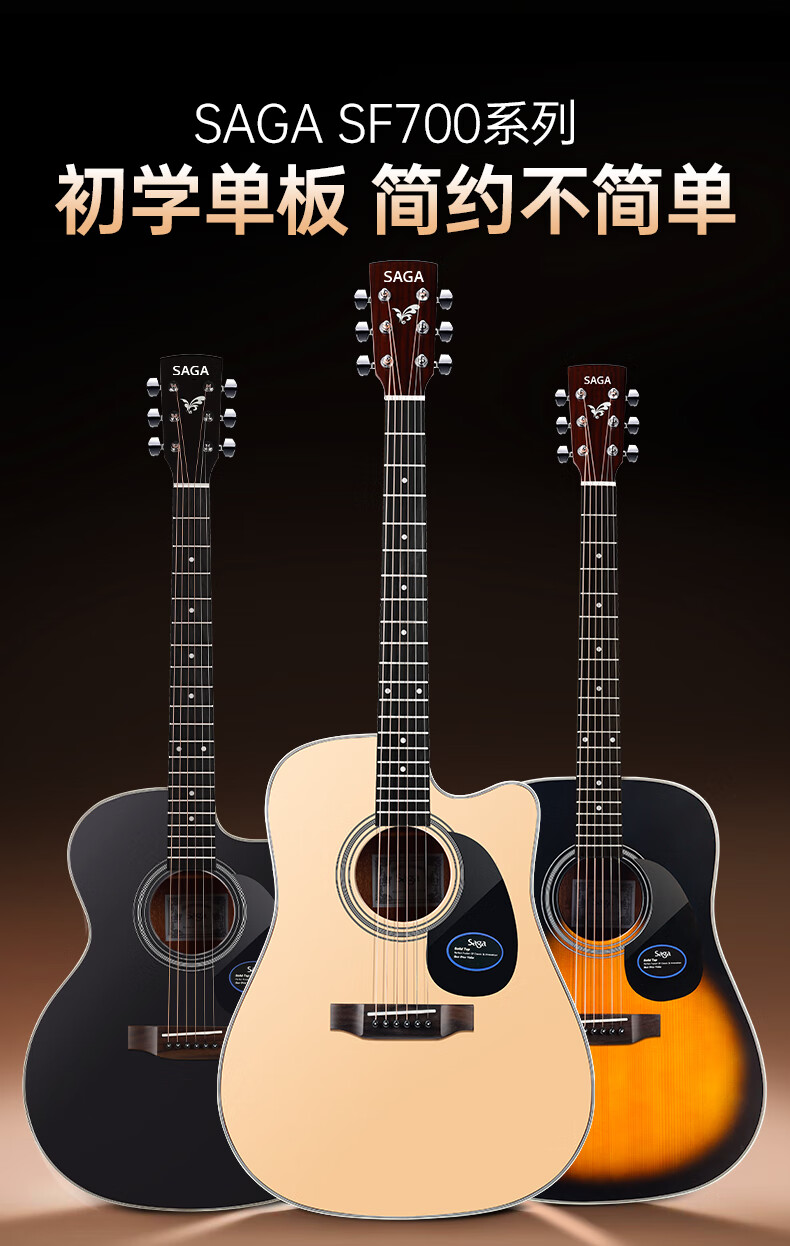 Saga (SAGA) guitar sf700 single top single folk Saga acoustic guitar entry-level beginner Saga musical instrument 41-inch D barrel SF700C wood color chipped corner