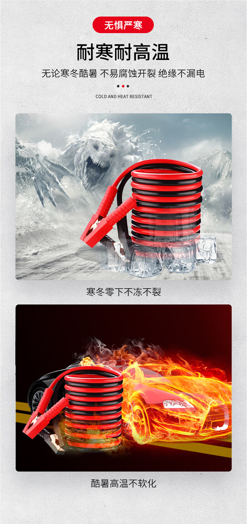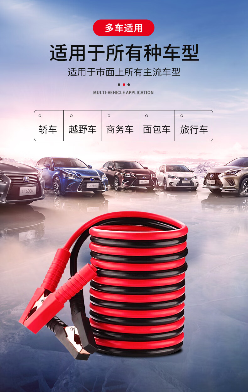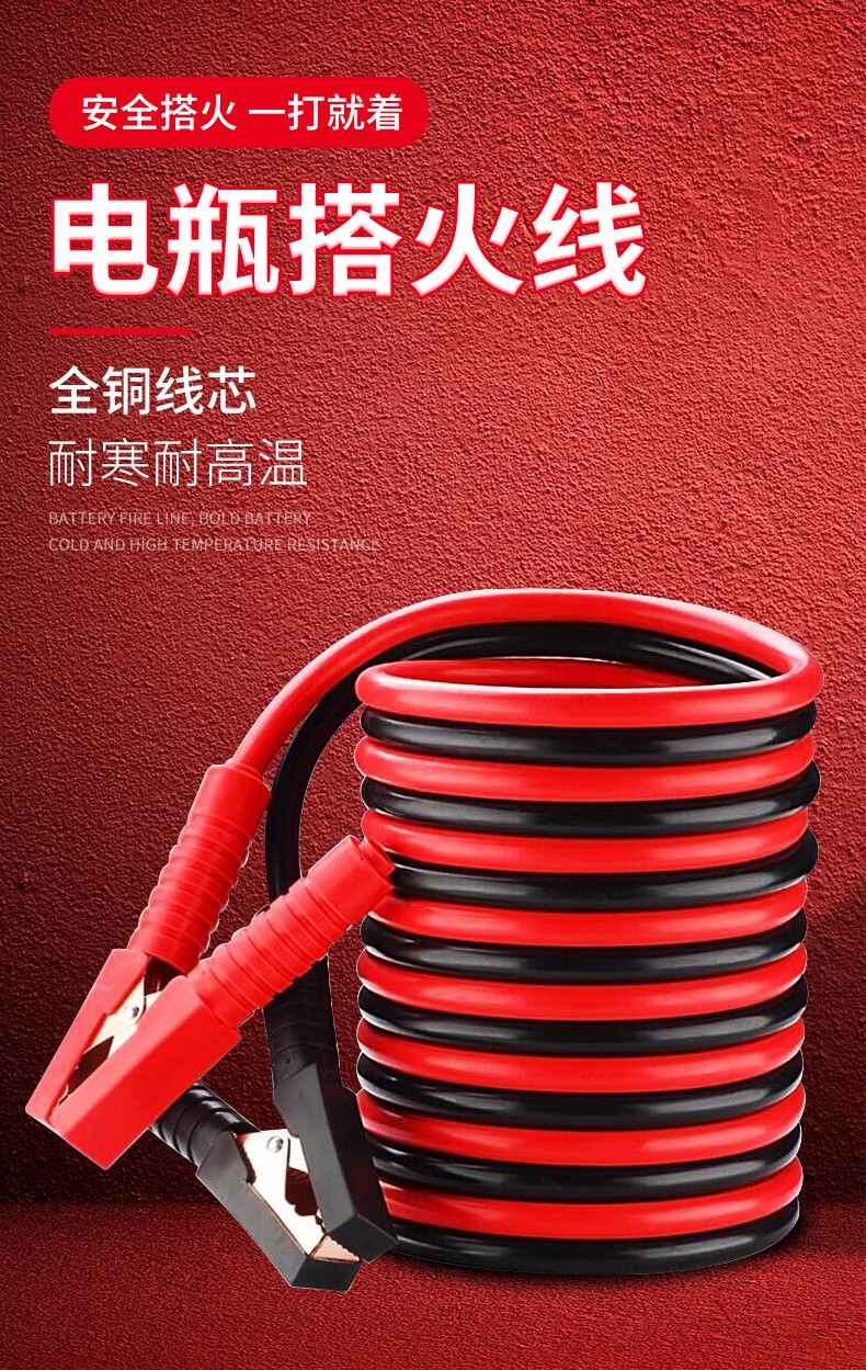 Jumu car battery wire and fire wire, battery wire, pure copper cross-river dragon clip, truck power connection line, emergency start power cord, all copper thickened car fire wire, 4 meters 2500A with current protector (full vehicle series)