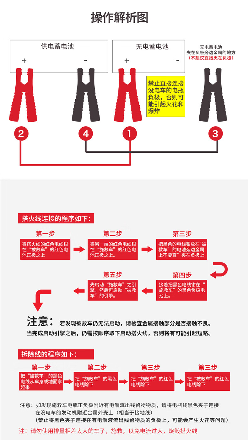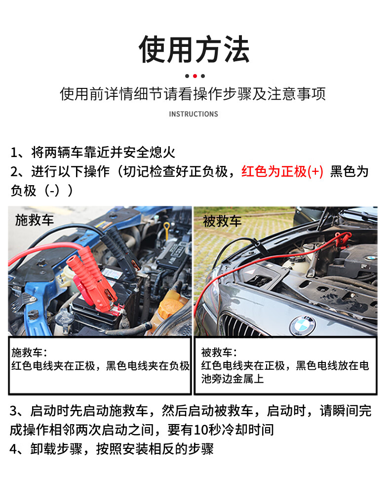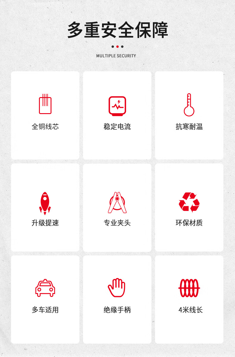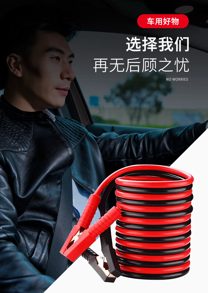 Jumu car battery wire and fire wire, battery wire, pure copper cross-river dragon clip, truck power connection line, emergency start power cord, all copper thickened car fire wire, 4 meters 2500A with current protector (full vehicle series)