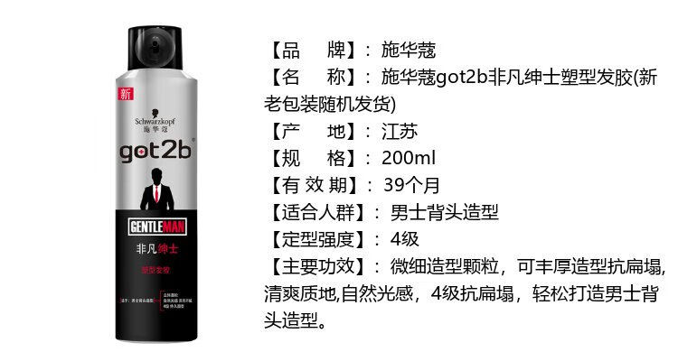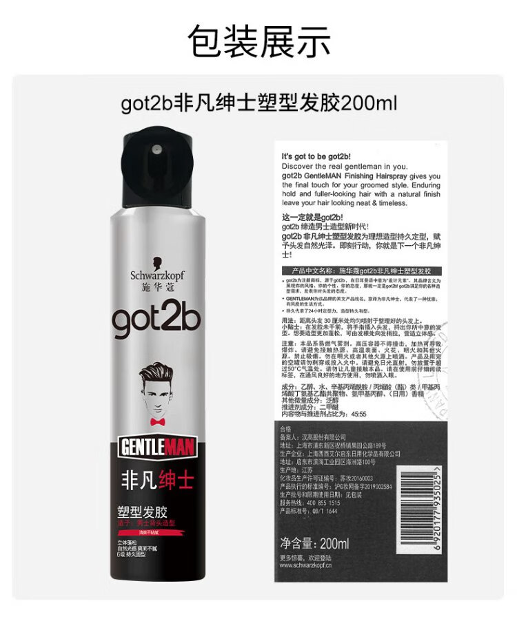 Schwarzkopf got2b Extraordinary Gentleman Shaping Hairspray 200ml (Styling Hairspray Fluffy Spray Dry Glue) (New and Old Packaging)