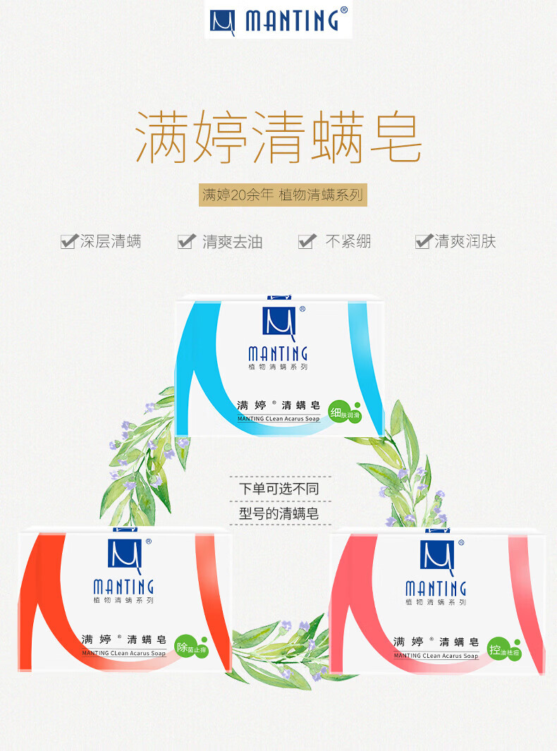 Manting Mite Removing Soap Mite Clearing Soap 100g Mite Removing Bath Hand Soap Soap Bath Facial Cleaning Soap Mite Cleaning Soap for Men and Women Three Boxes (Bacteria Removing and Itching Relief)