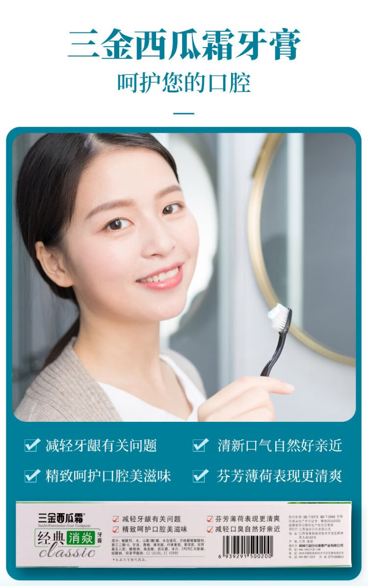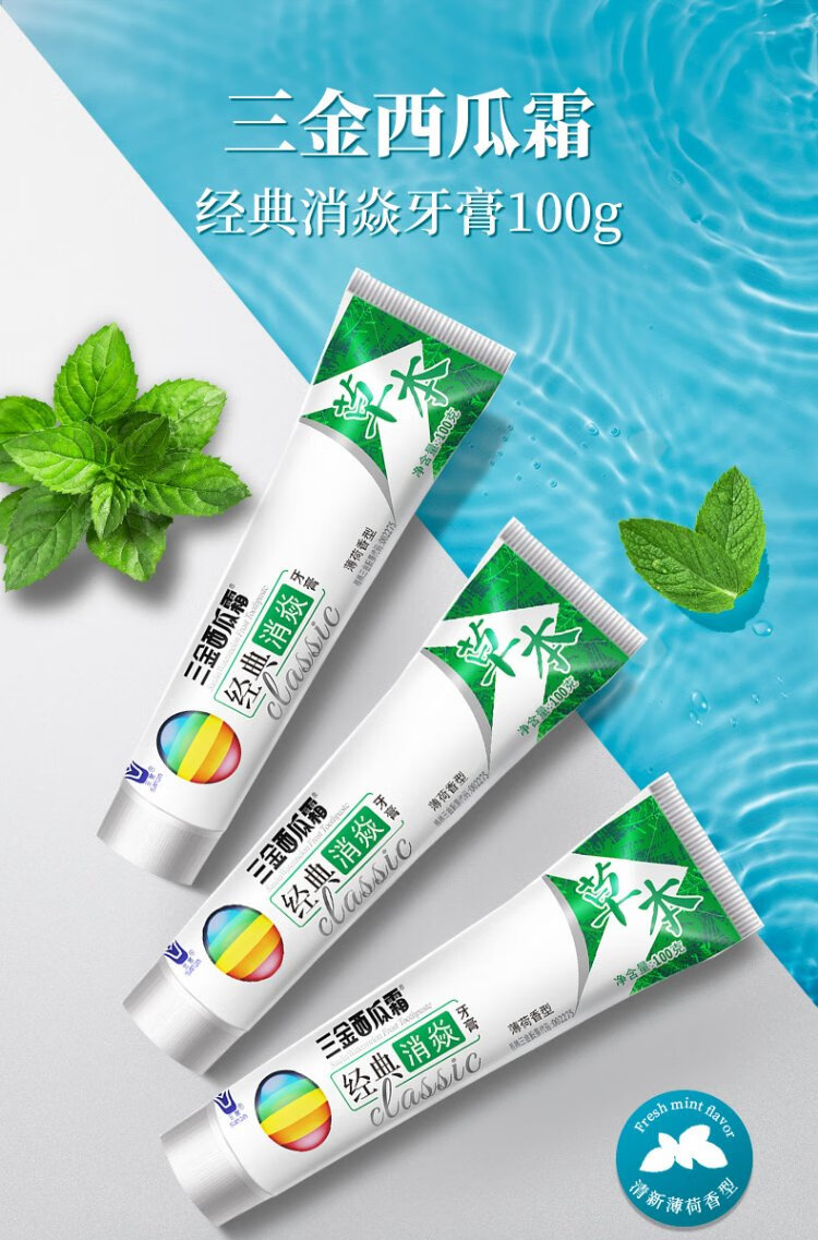 Sanjin Watermelon Cream Toothpaste Mint Fresh Breath Oral Herbal Xiaoyan Men's and Women's Toothpaste 100g*3 Pieces Set Gift