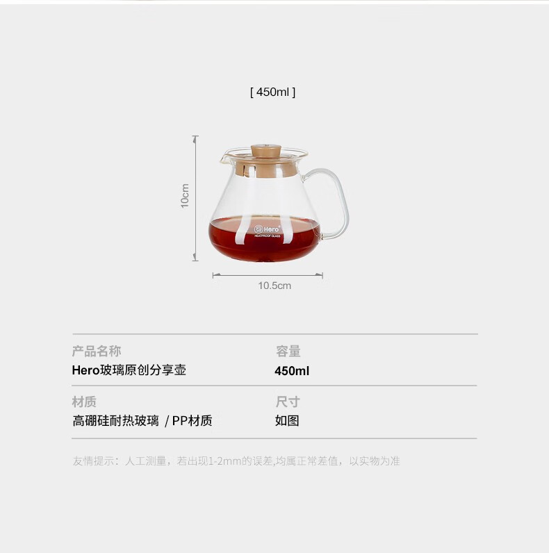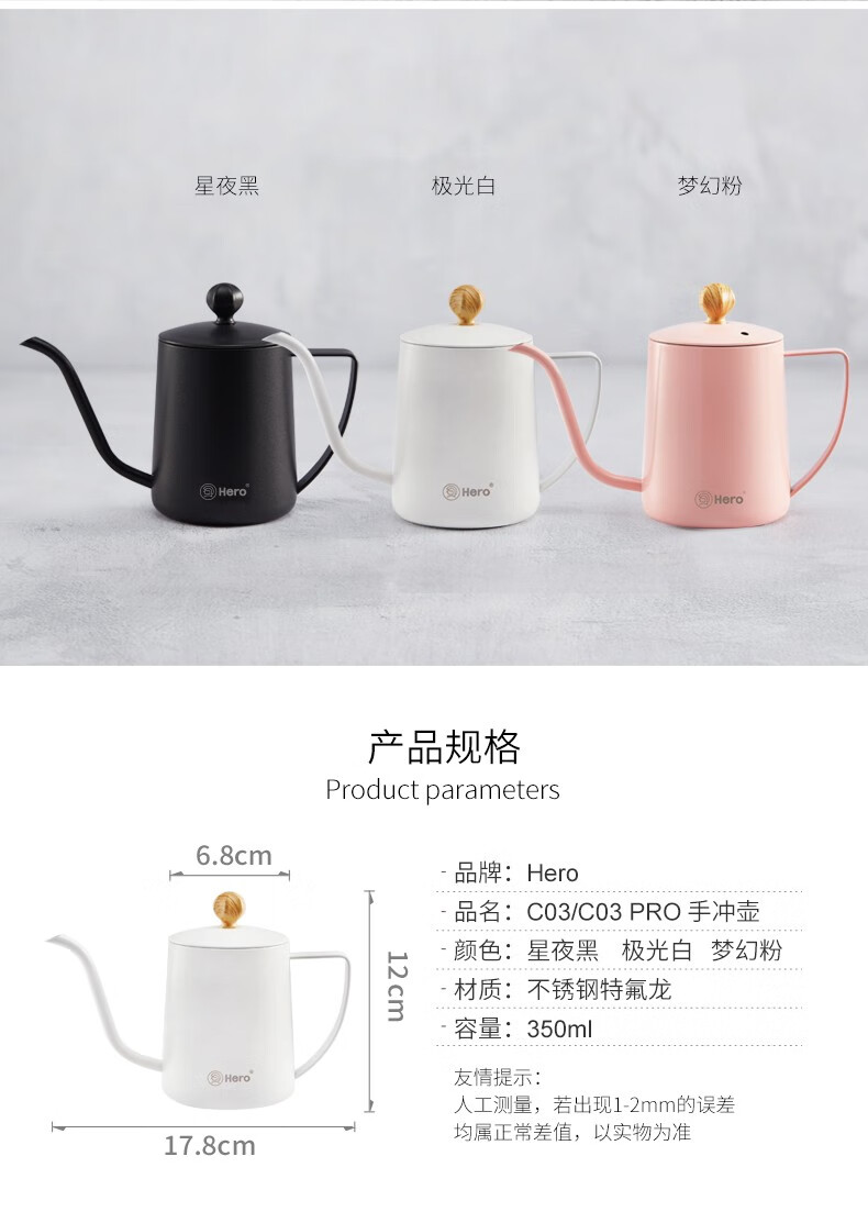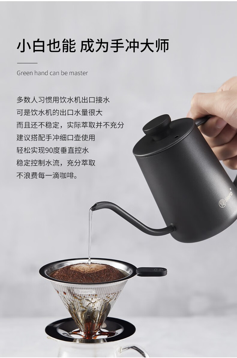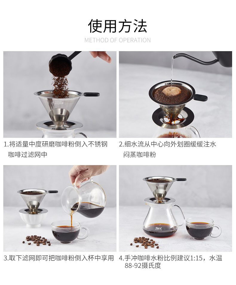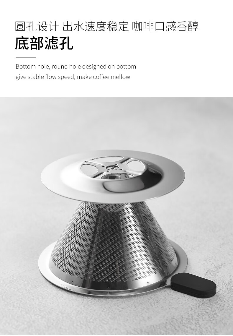 Hero coffee filter, double-layer 304 stainless steel filter, filter cup funnel, filter paper-free hand-brewed coffee pot set, silver 1-2 cups-base model