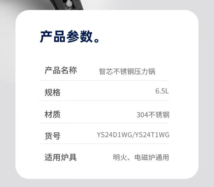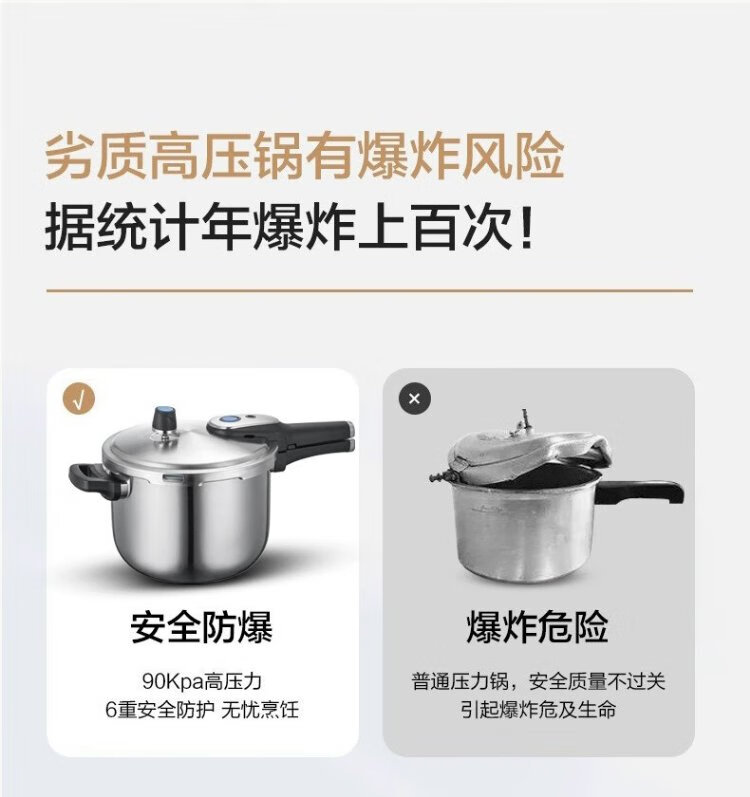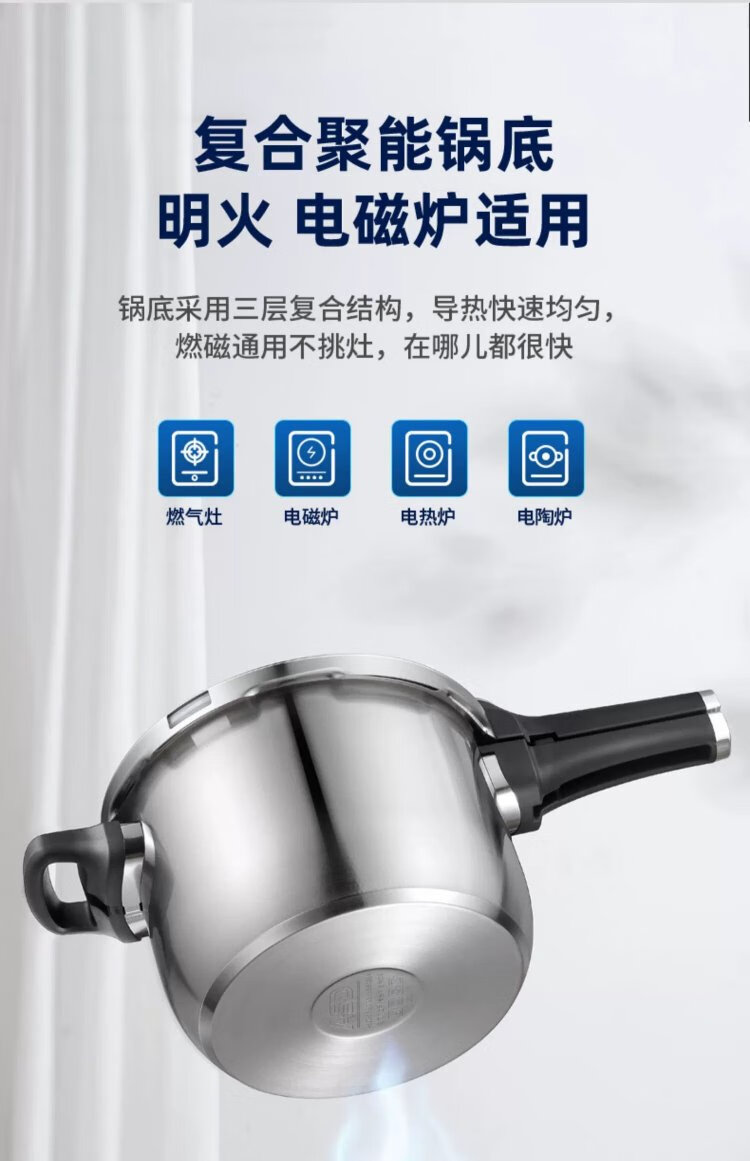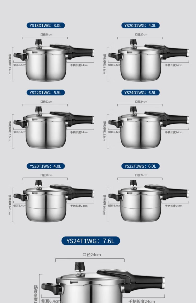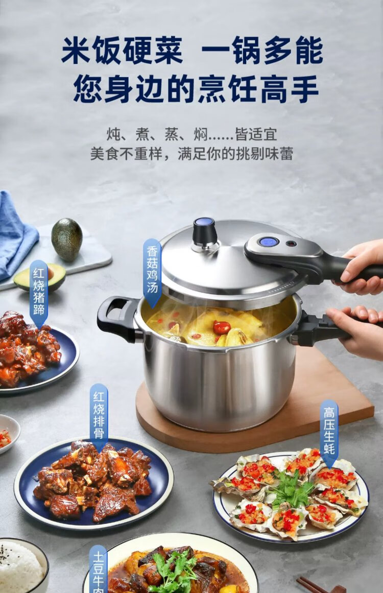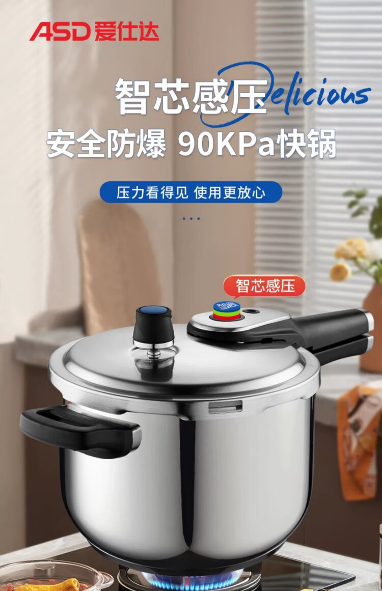 ASD pressure cooker 304 stainless steel T-shaped 7.6L smart core pressure cooker gas induction cooker universal YS24T1WG