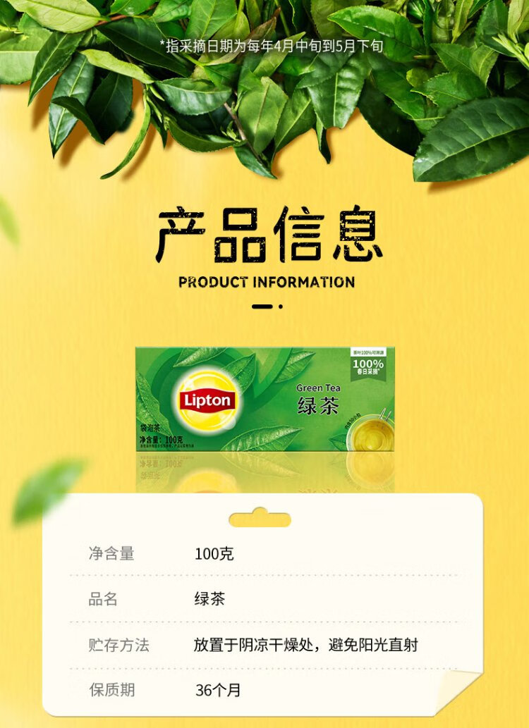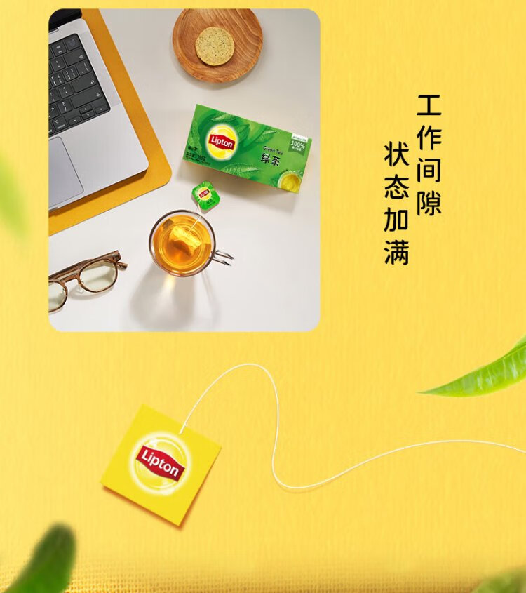 Lipton Green Tea Anhui Huangshan 100g gift non-independent bag double bag tea bag office afternoon tea 2g*50 bags