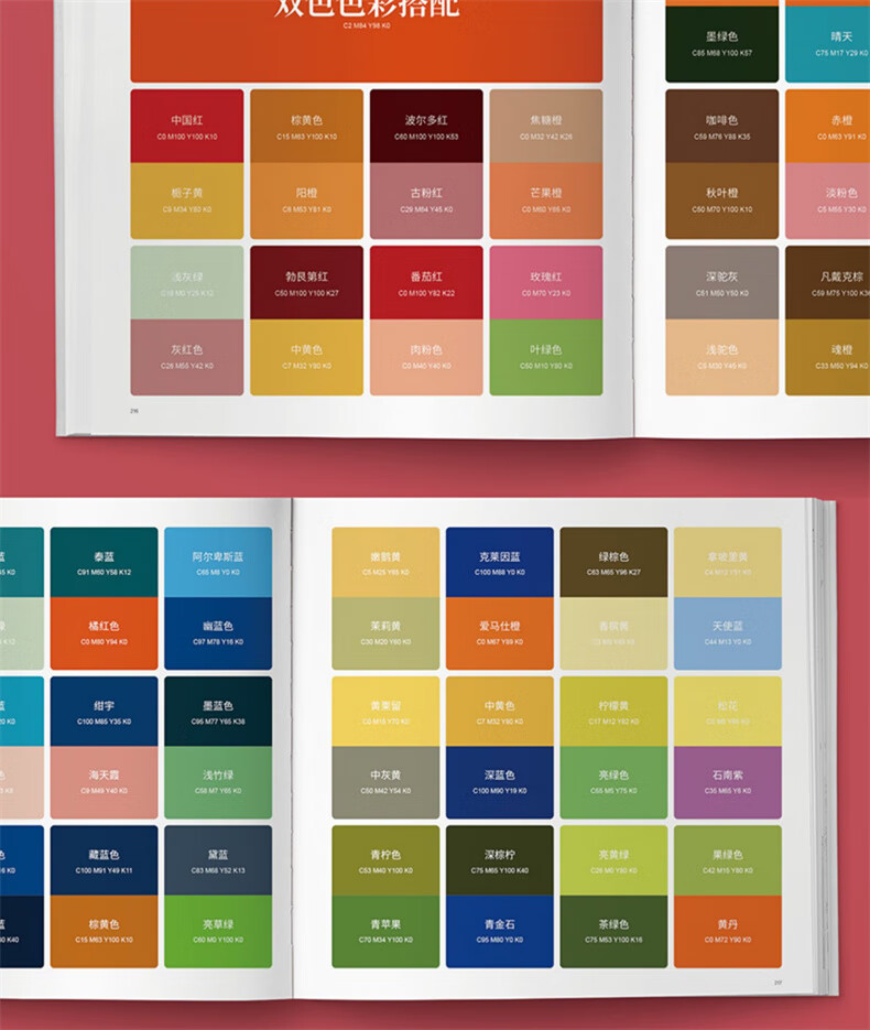 International standard four-color printing color matching manual (two copies) Special silver green gold red gold four-color overprinting CMYK chromatography four-color printing International standard printing chromatography book quinary, decimal color card Chinese traditional color Morandi Macaron four-color matching card color matching manual color card