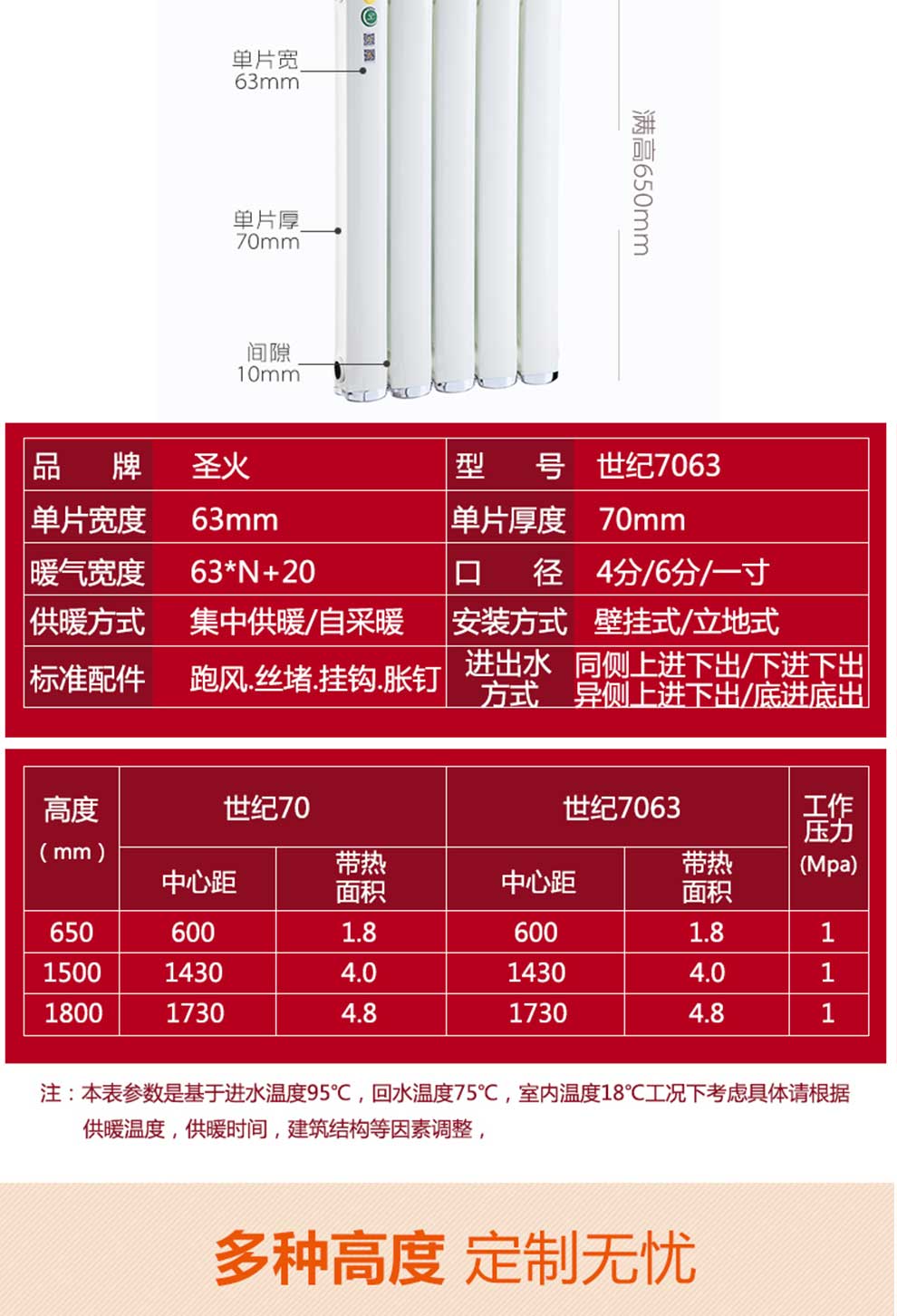 Holy fire thick channel steel radiator bathroom natural gas household central heating steel 70 enlarged water channel radiator Guangcai 70 370mm