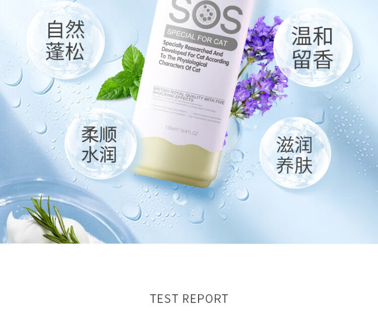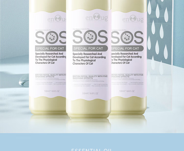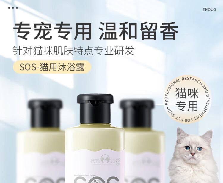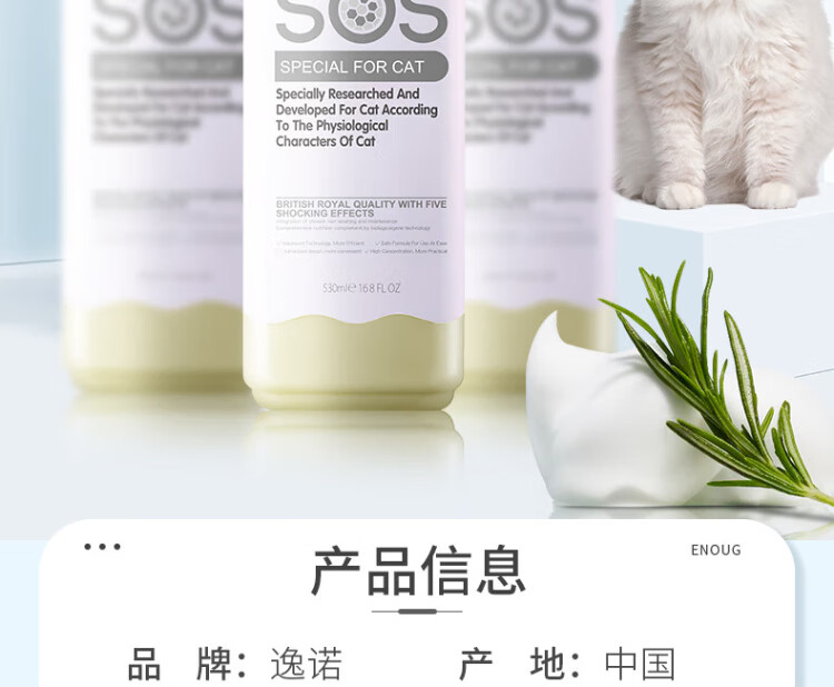 Enoug SOS cat shower gel, cat bath special antibacterial cleansing and deodorizing kitten pet shower gel 530ml