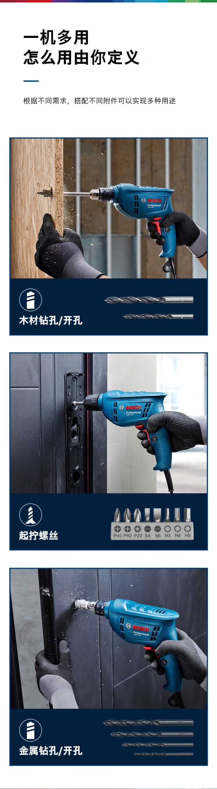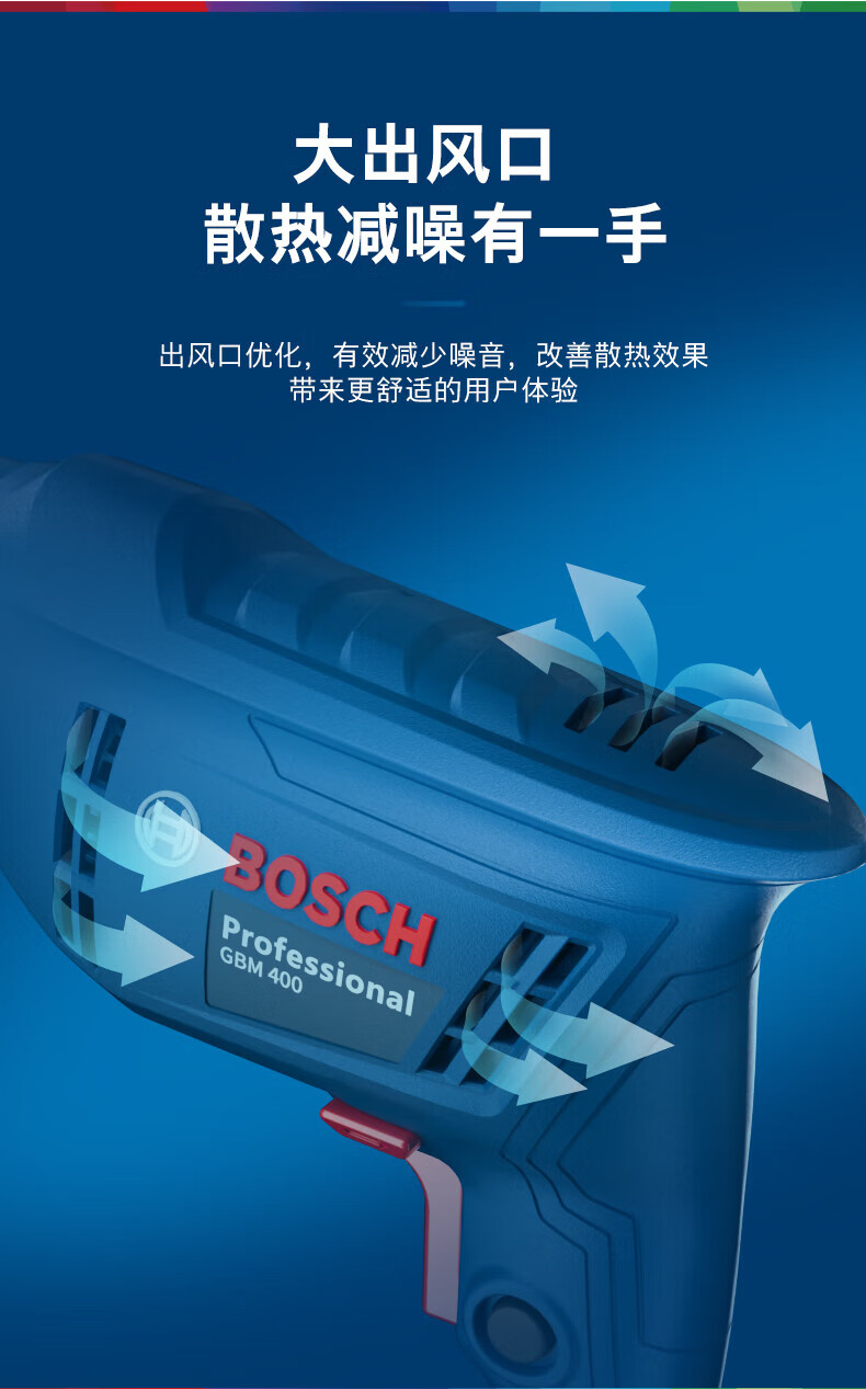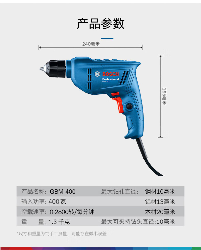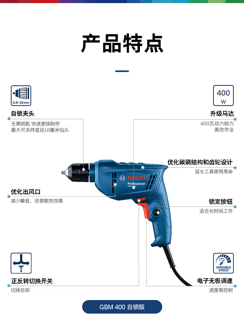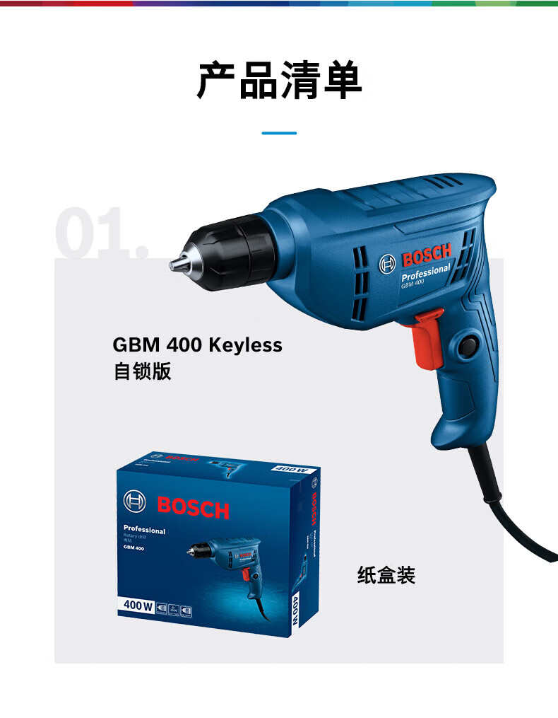 Bosch electric hand drill household electric drill GBM400 Bosch electric screwdriver tool box set speed regulating forward and reverse self-locking chuck | 7 accessories | 400W
