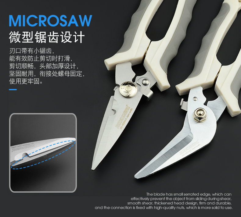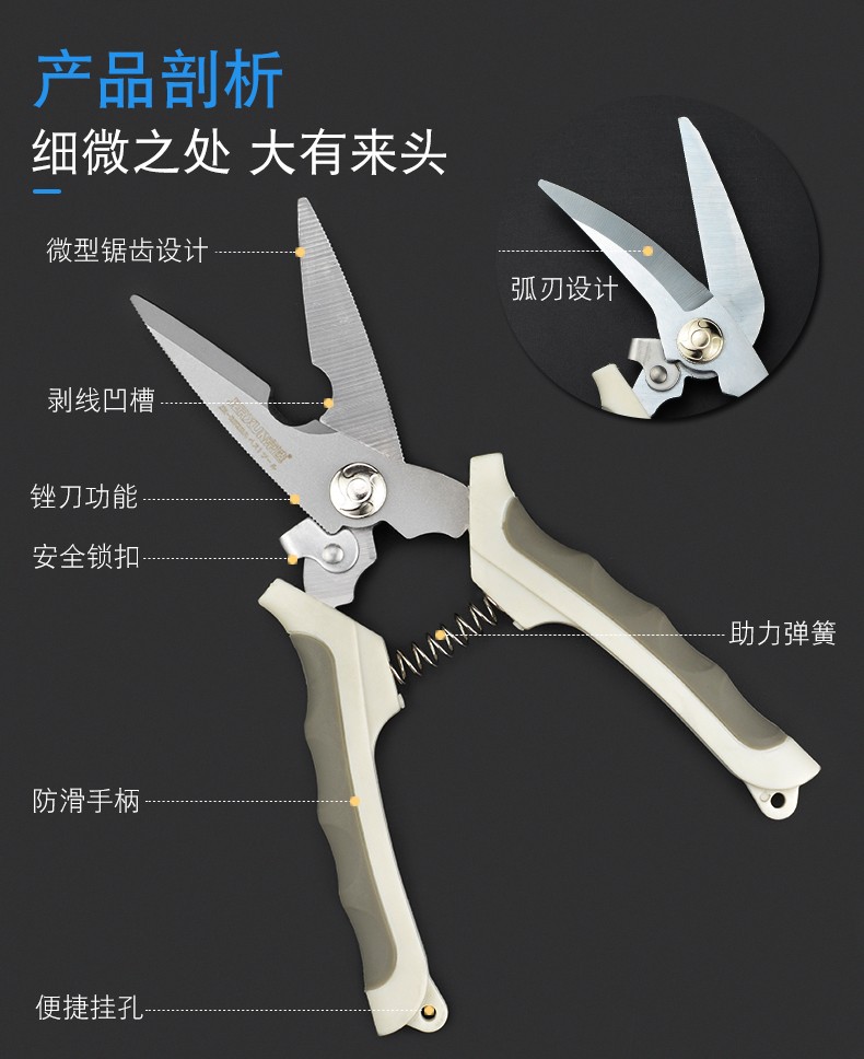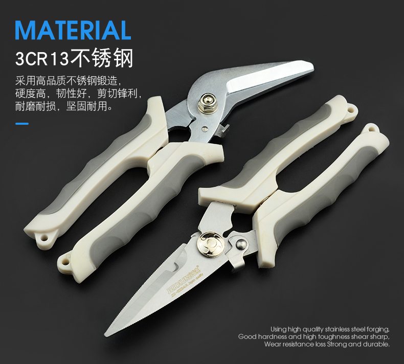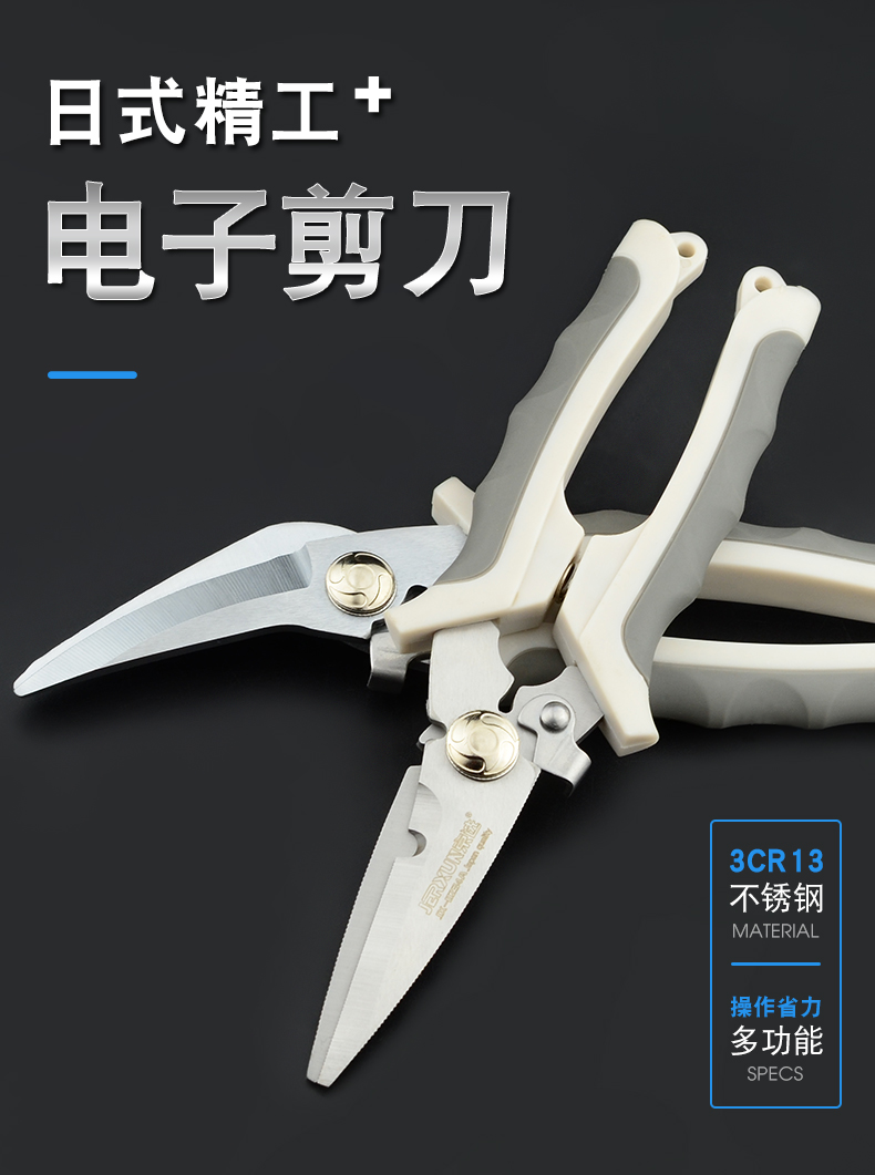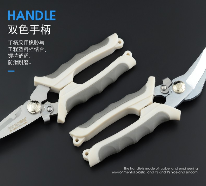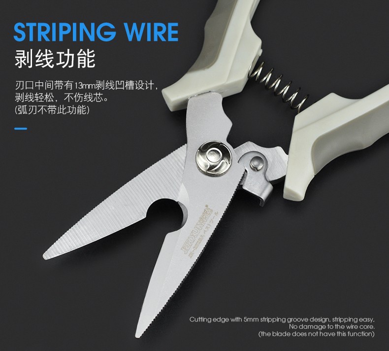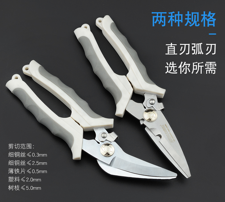 JERXUN electrician's scissors, multifunctional wire trough scissors, 8-inch electronic wire stripping, stainless steel iron shears, gardening kitchen scissors, 8-inch curved blade multifunctional scissors