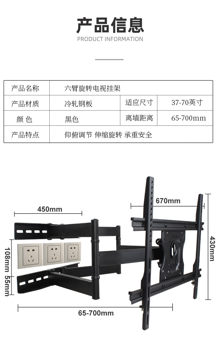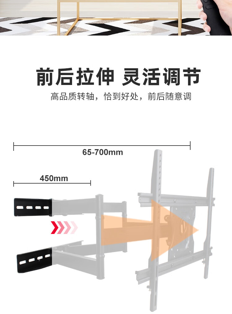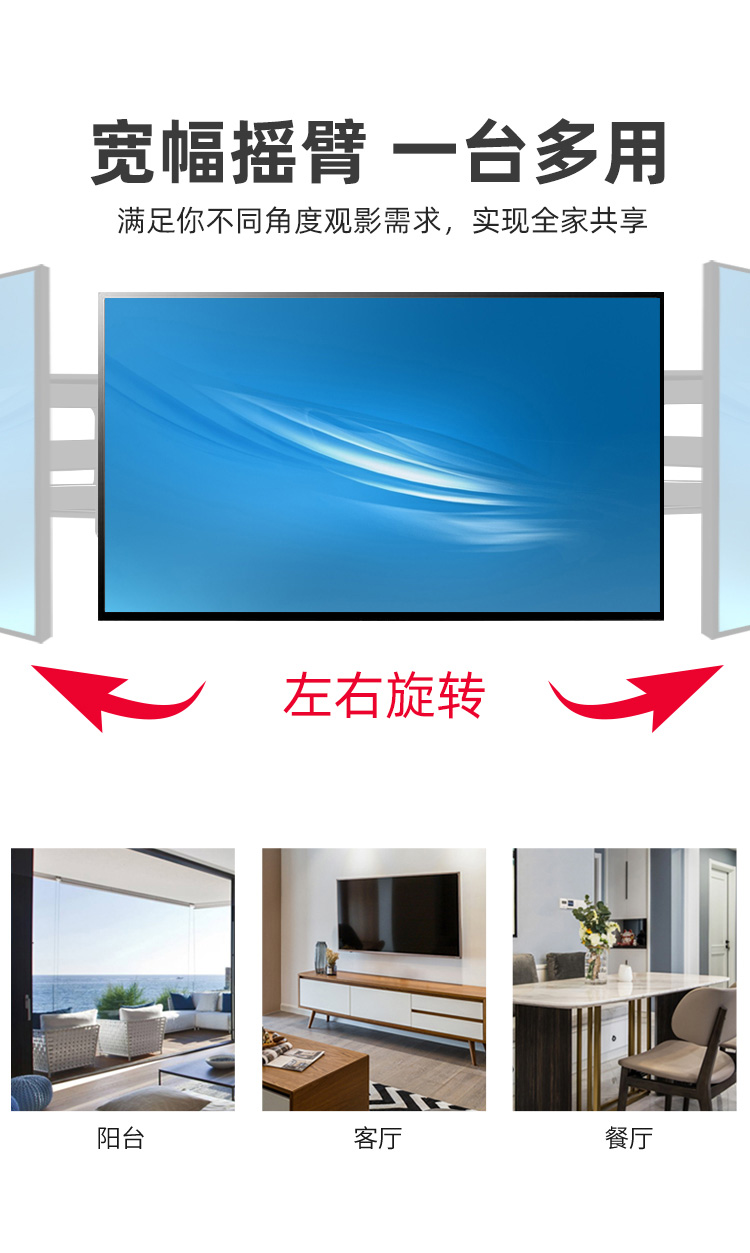 Sance 37-70-inch TV stand folding telescopic swivel arm mount 50-inch rotating 90 degrees suitable for Hisense Sharp Samsung Sony Philips Xiaomi TCL TV