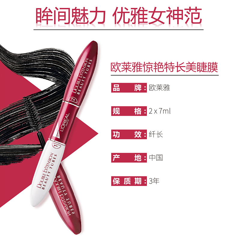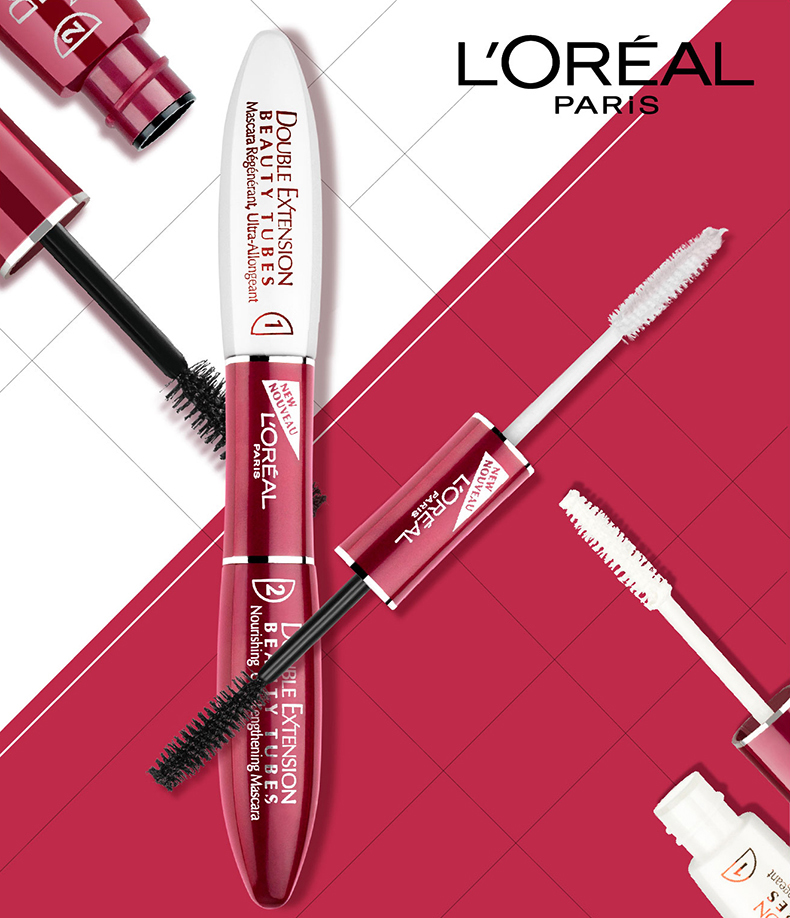 L'Oreal counter version double-ended stunning extra long eyelash mask 2*7ml (long, thick, curling, nourishing makeup) long-lasting