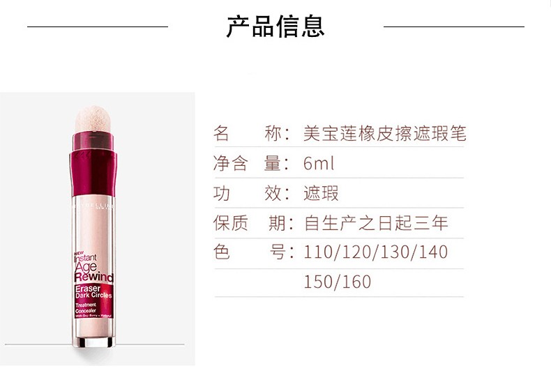 Maybelline (MAYBELLINE) Eraser Concealer Pen Freckles Face Covers Spots and Acne Marks Does Not Take Off Makeup Dark Circles Moisturizing Holiday Gift 120# Suitable for Natural Whitening