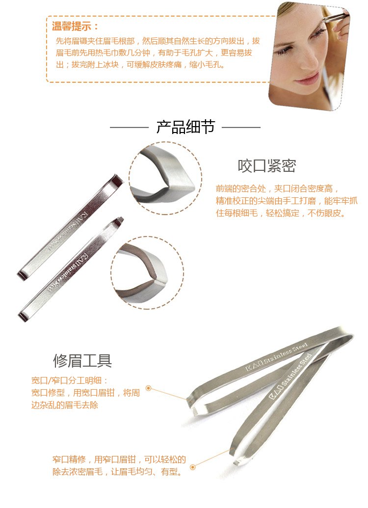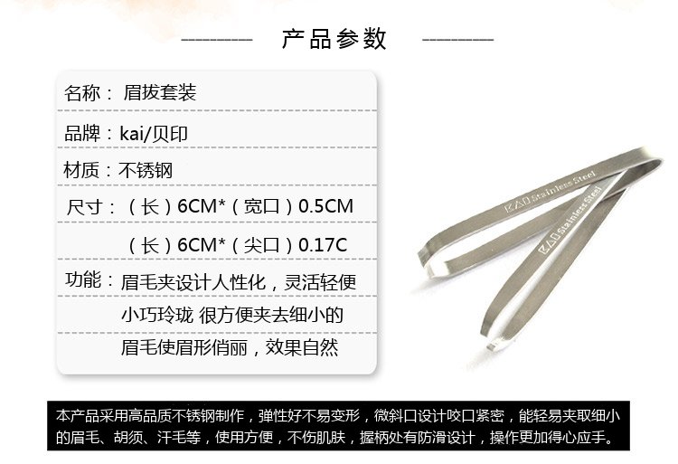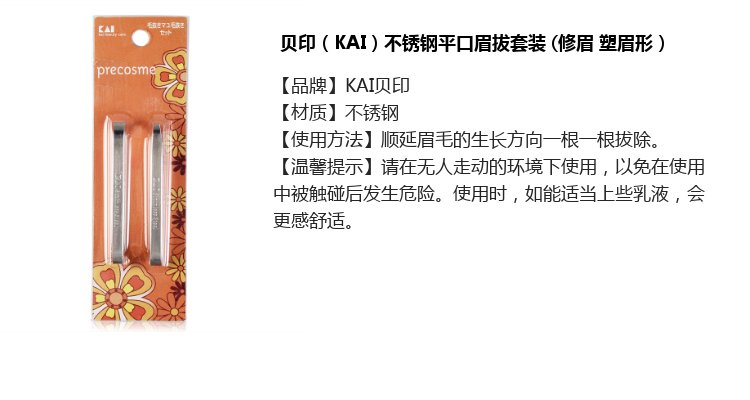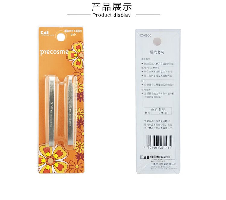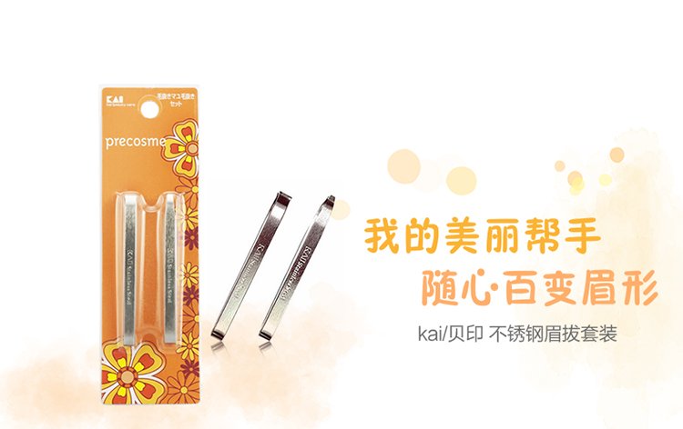 KAI stainless steel flat-mouth eyebrow pliers and eyebrow plucking set (eyebrow shaping, eyebrow shaping) wide-mouth and narrow-mouth tweezers for hair plucking