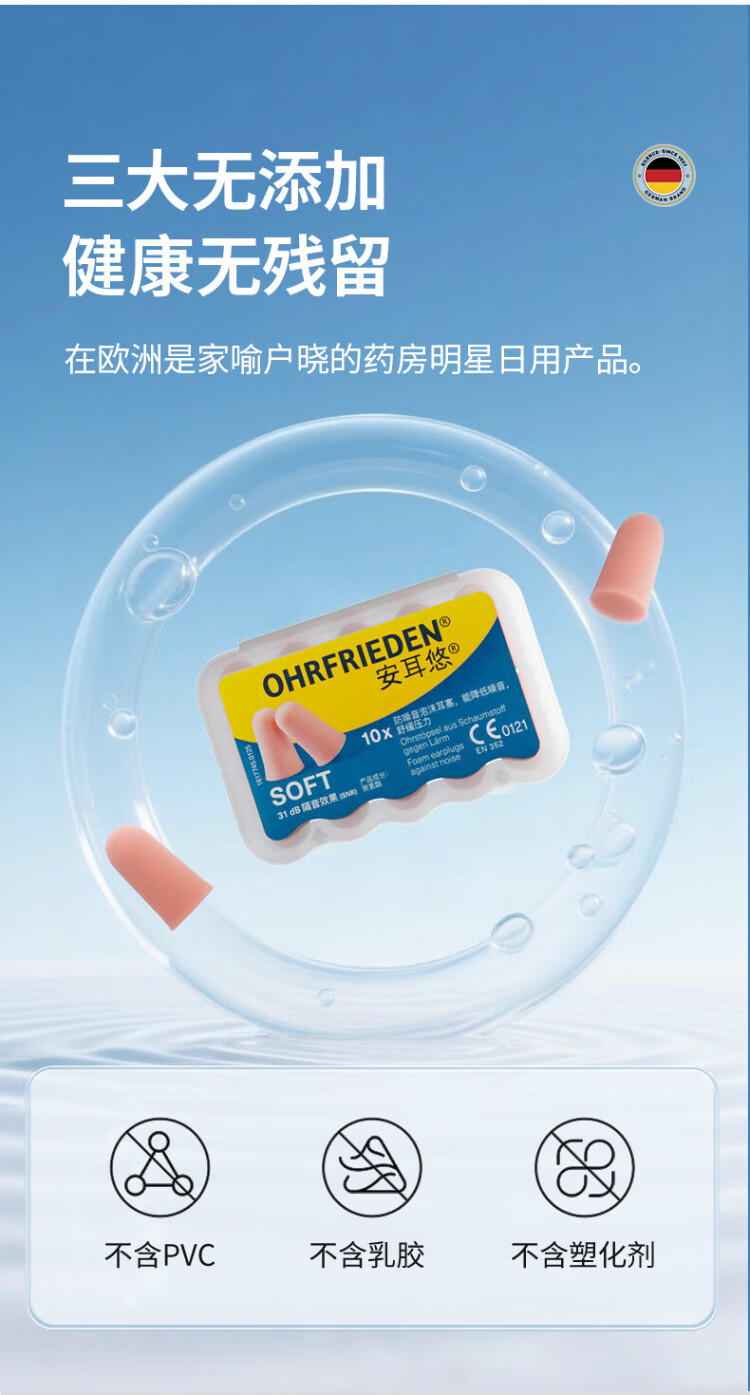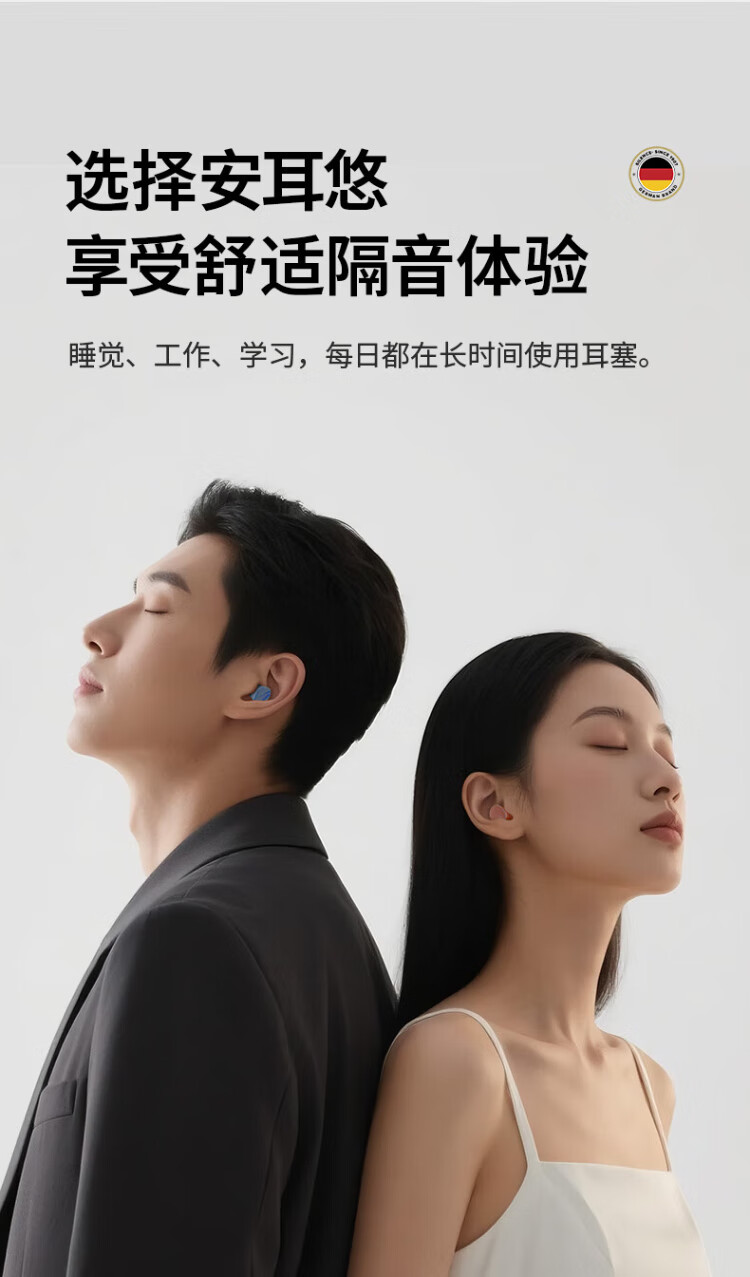An'eryou soundproof earplugs, anti-noise sleep earplugs, noise reduction and sound insulation for work and study, German original soft 2 sets